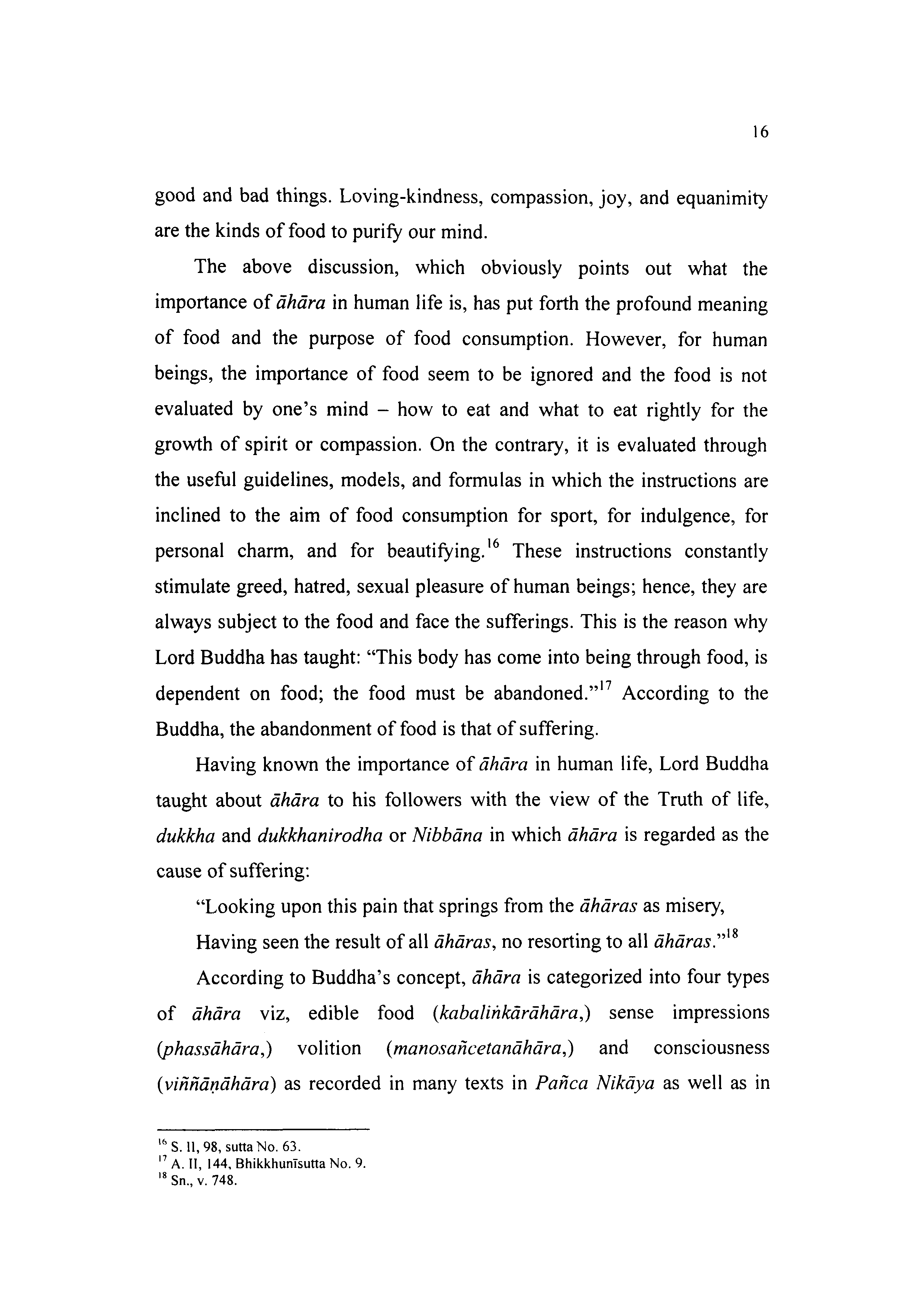 Having known the importance of āhāra in human life, Lord Buddha