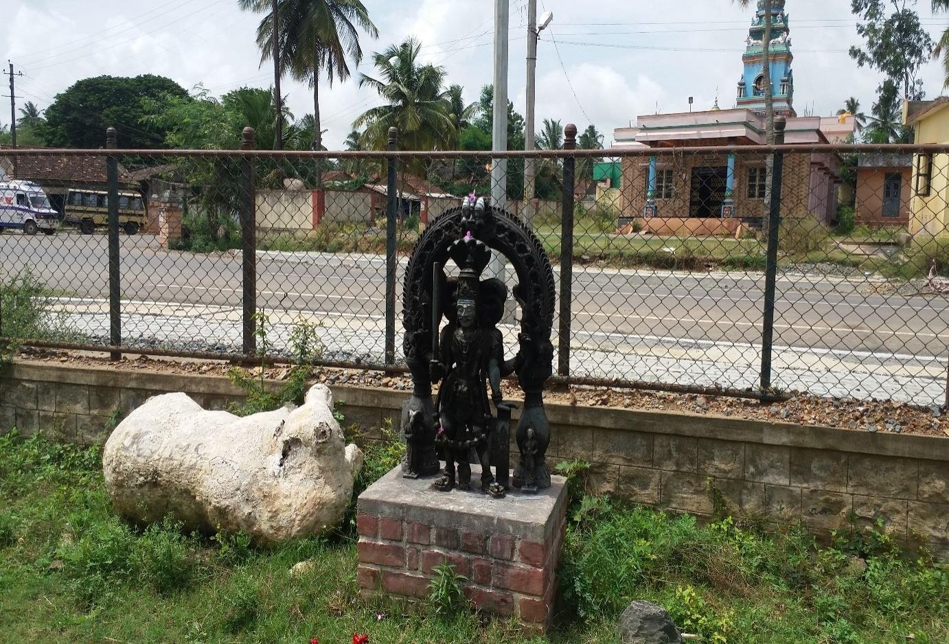 Virabhadra sculpture in the Kalleshwara temple campus at Havasabavi, Hirekerur Taluk