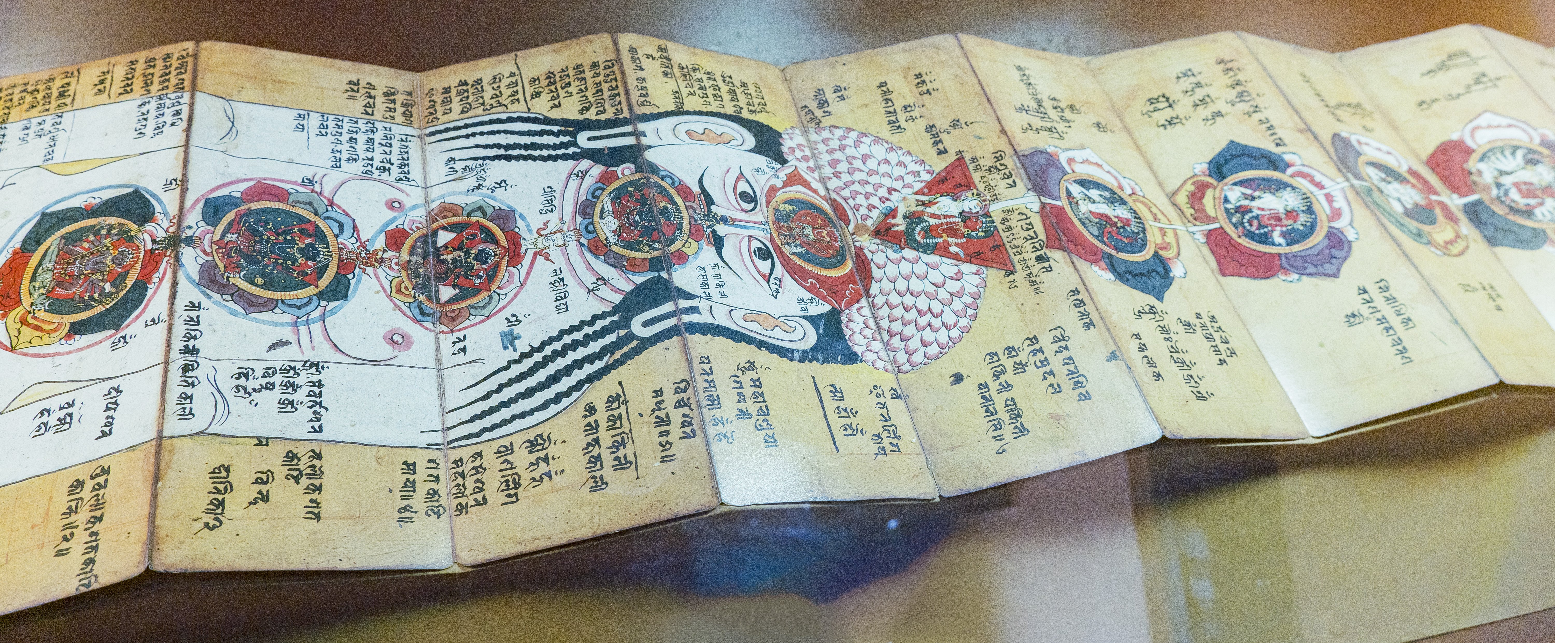 The leaves of the manuscript are accordion-folded in a format known as thyasaphu. The text is composed in poor Sanskrit and written in Newari script. No date is inscribed. Traditionally, as an esoteric cult object, this manual would only be seen by properly initiated persons. But as with much that was previously secret, in the modern world the manuscript has come into the public domain.