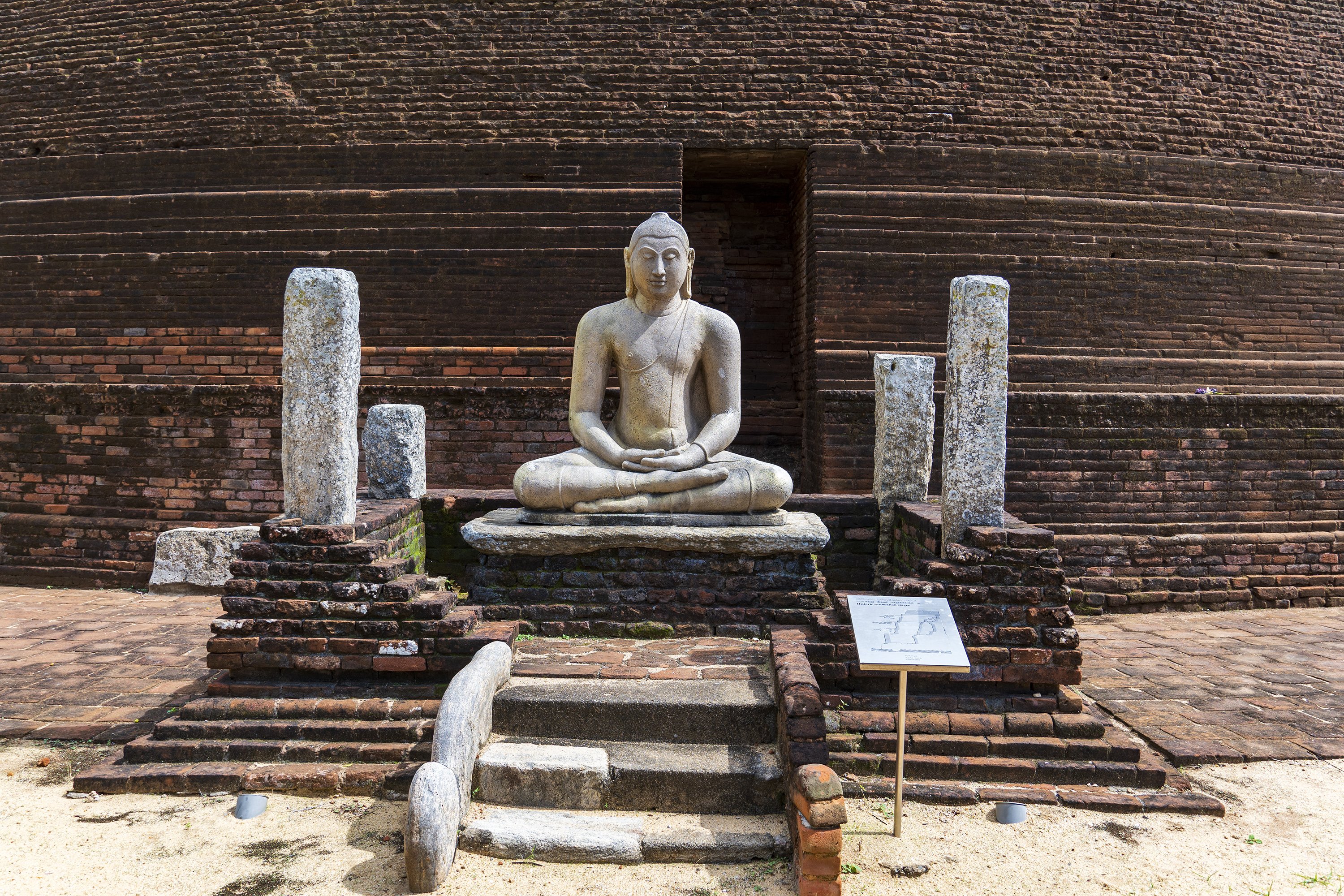 These photos were taken at the Sandagiri Stupa which forms part of an ancient Buddhist Monastic complex in Tissamaharama (Southern Sri Lanka). It is believed that the Sandagiri Stupa was built in the 3rd century BCE by king Mahanaga. The archaeological site includes various other structures such as the Uposatha-Ghara, Bodhi-Ghara, and Jantha-Ghara. The Stupa also finds mention in the Mahamvasa chronicles.