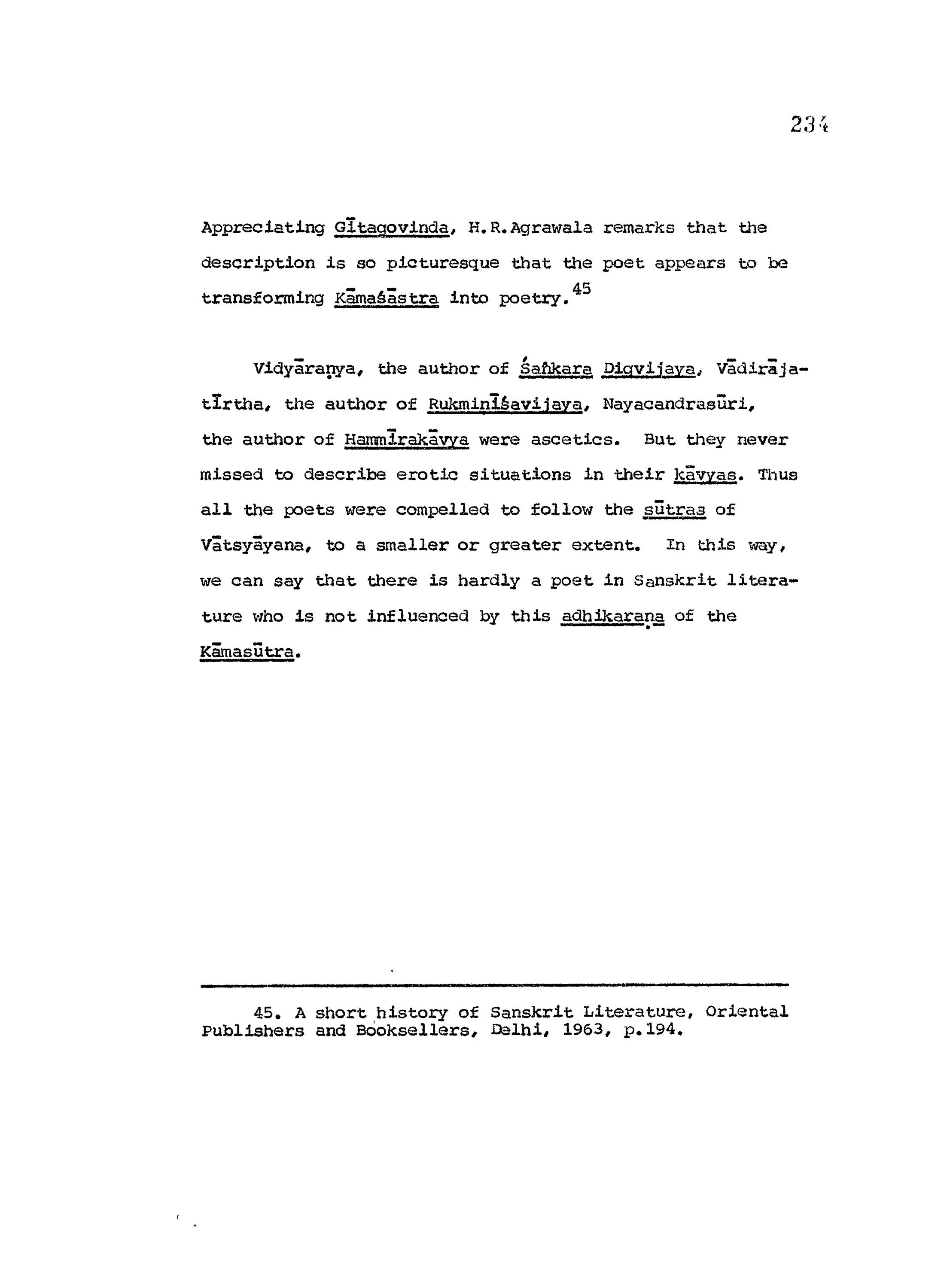 Appreciating Gitagovinda, H. R.Agrawala remarks that the description is so picturesque that the poet appears to be 45 transforming Kamasastra into poetry.