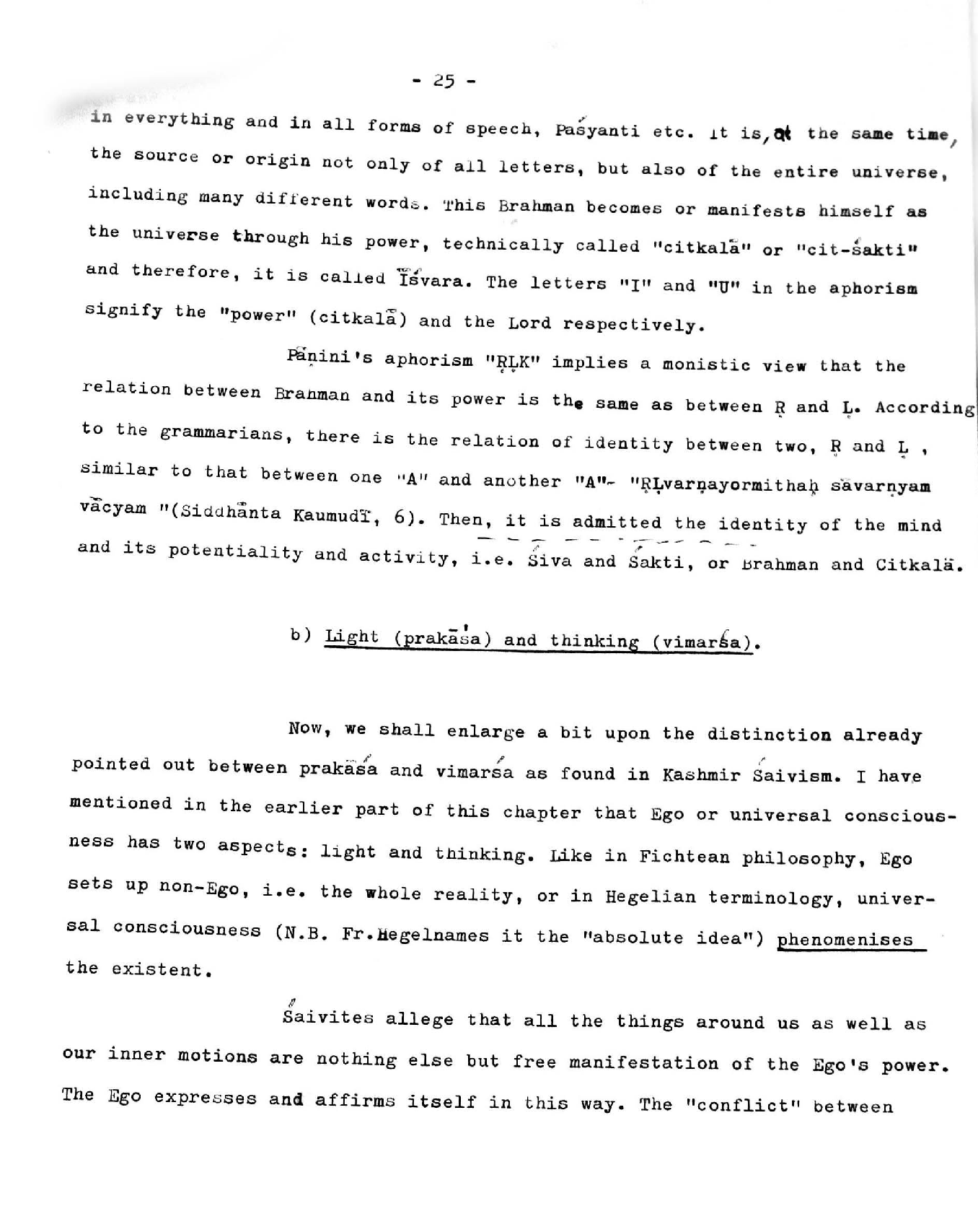 pointed out between prakasa and vimarsa as found in Kashmir Saivism. I have