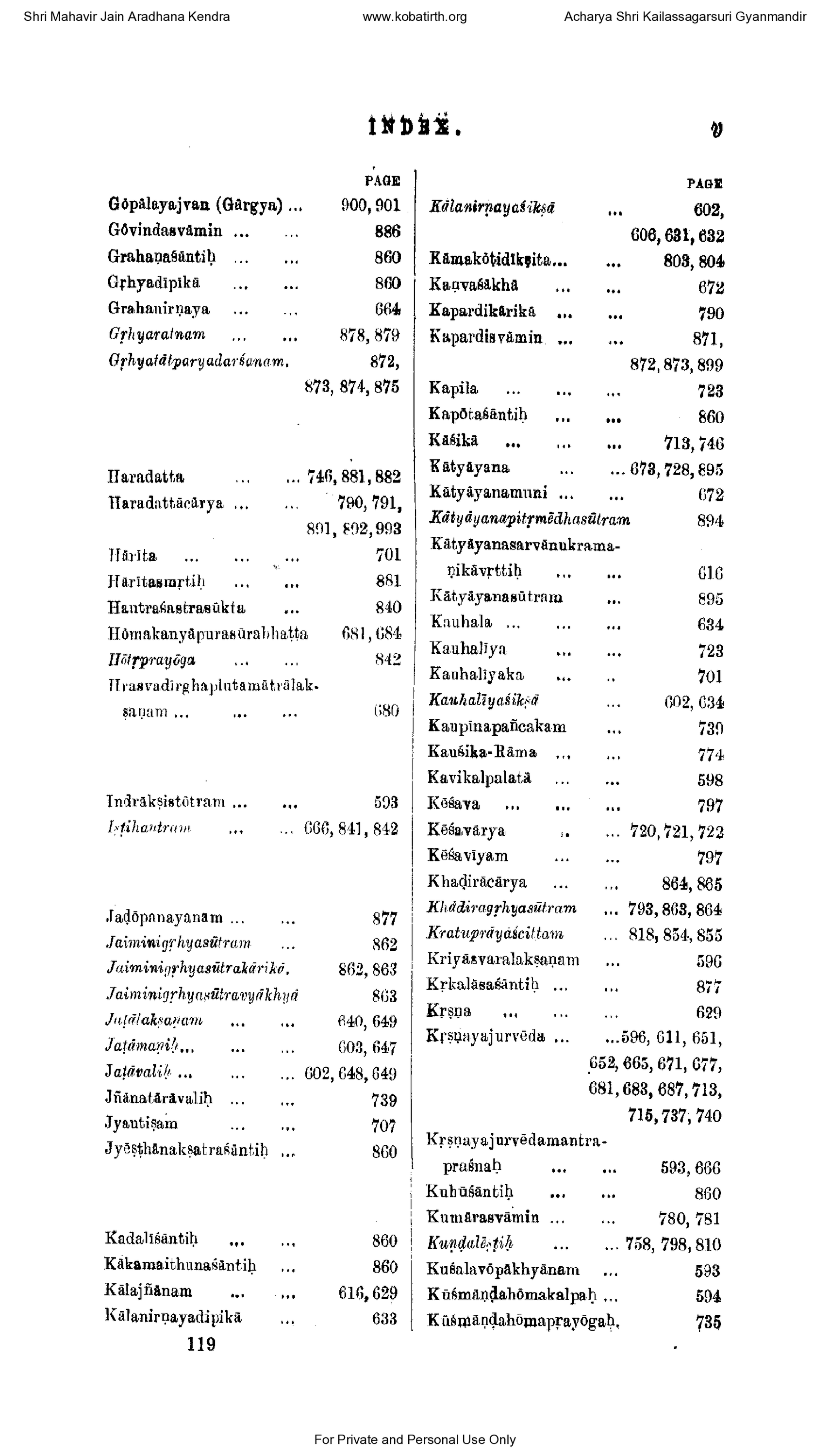 Shri Mahavir Jain Aradhana Kendra www.kobatirth.org Acharya Shri Kailassagarsuri Gyanmandir INDEX. PAGE Gopalayajvan (Gargya) ... 900,901 Kalanirnayasikṣā Govindasvamin 886 Grahaṇasantiḥ