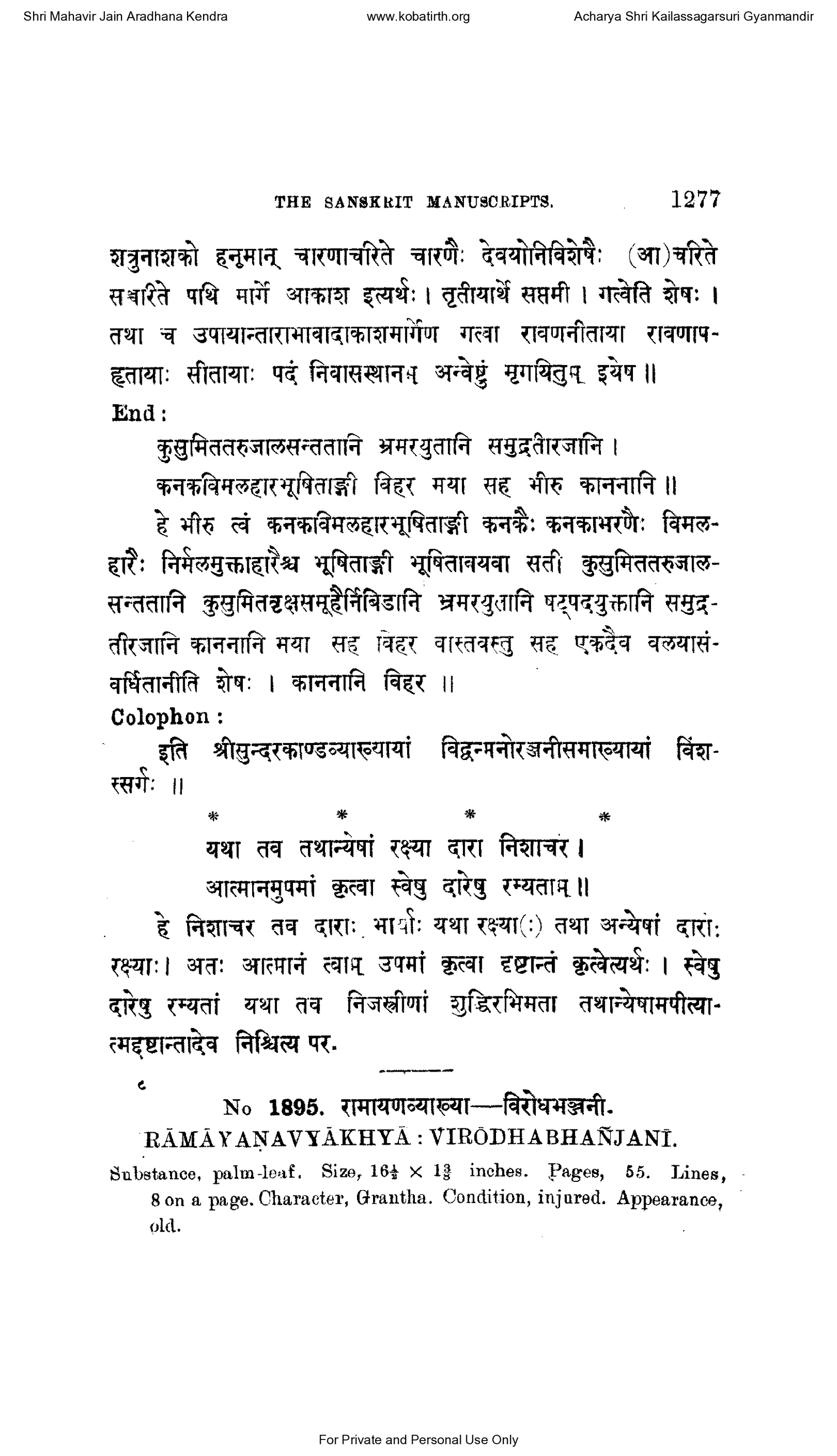 ] No 1895. रामायणव्याख्या --- विरोधभञ्जनी.