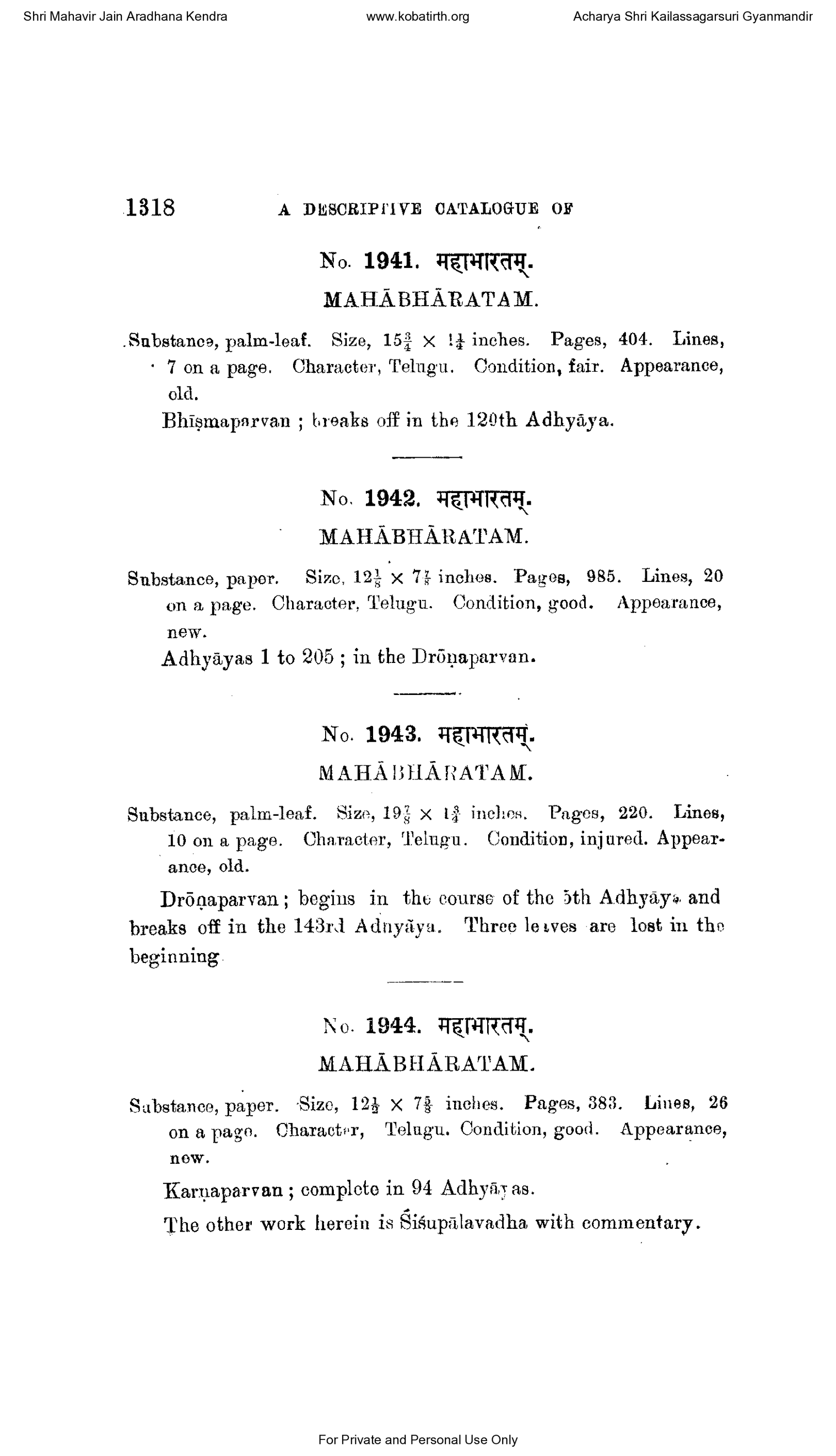 No. 1943. महाभारतम्.