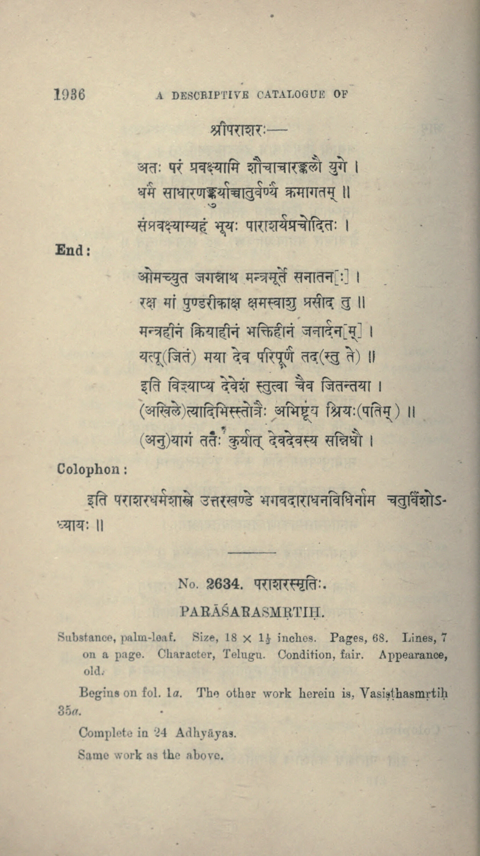 Essay name: A Descriptive Catalogue of the Sanskrit Manuscripts, Madras