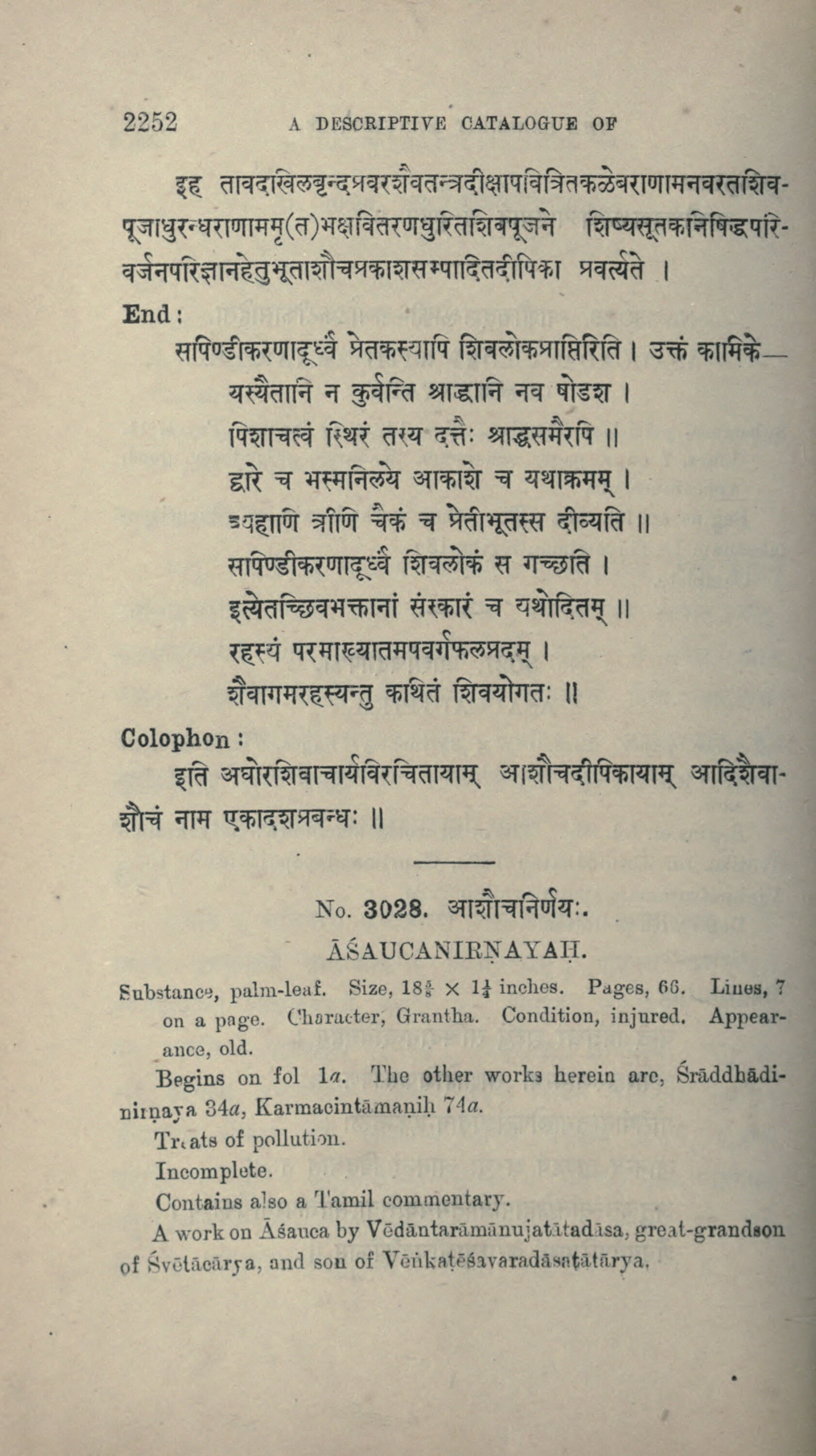 Essay name: A Descriptive Catalogue of the Sanskrit Manuscripts, Madras
