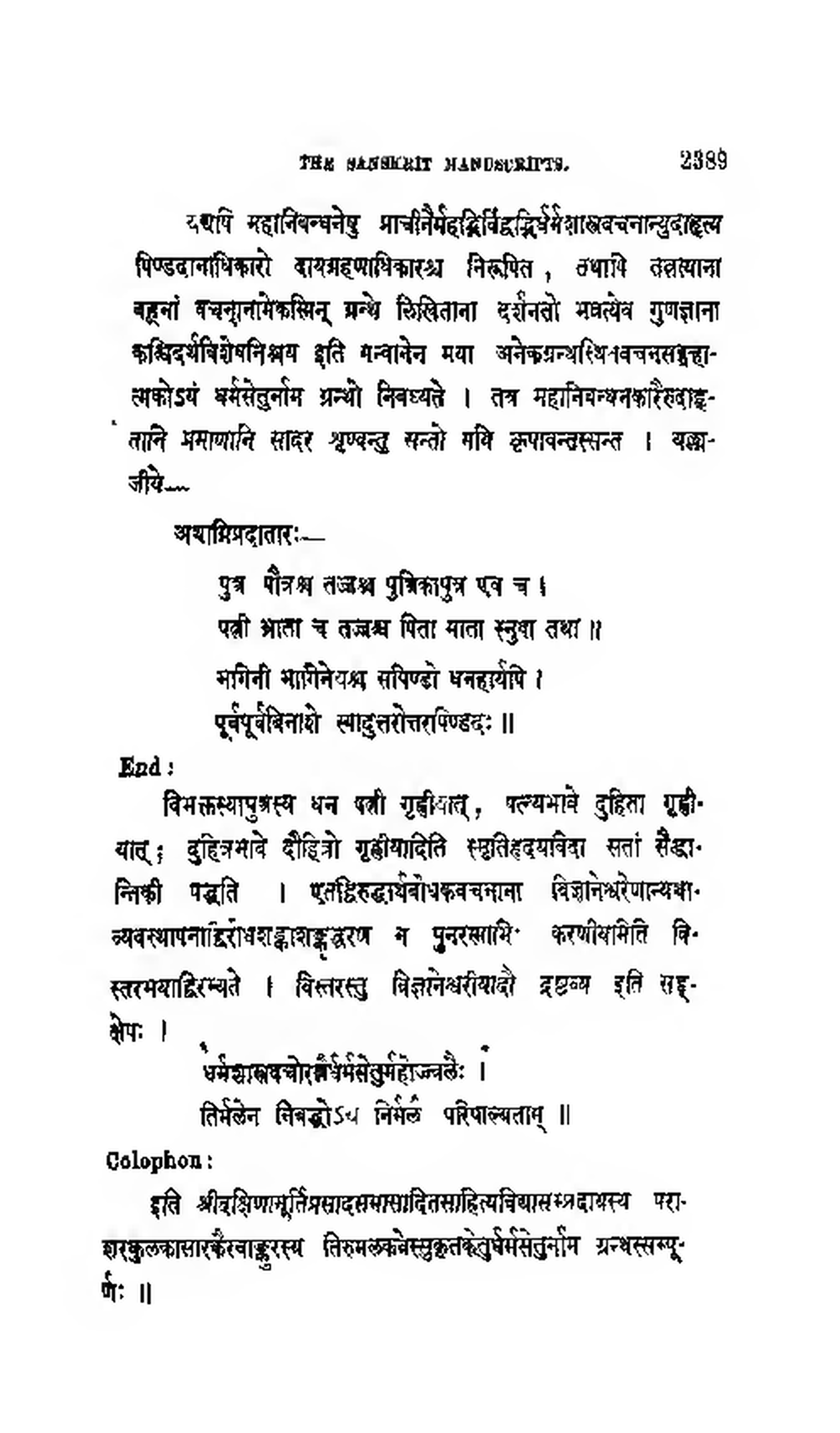L THE SANSKRIT HANDSURITTS. 2389 यद्यपि महानिबन्धनेषु प्राचीनैर्महद्भिर्विद्भिर्धर्मशास्त्रवचनान्युदाहृत्य