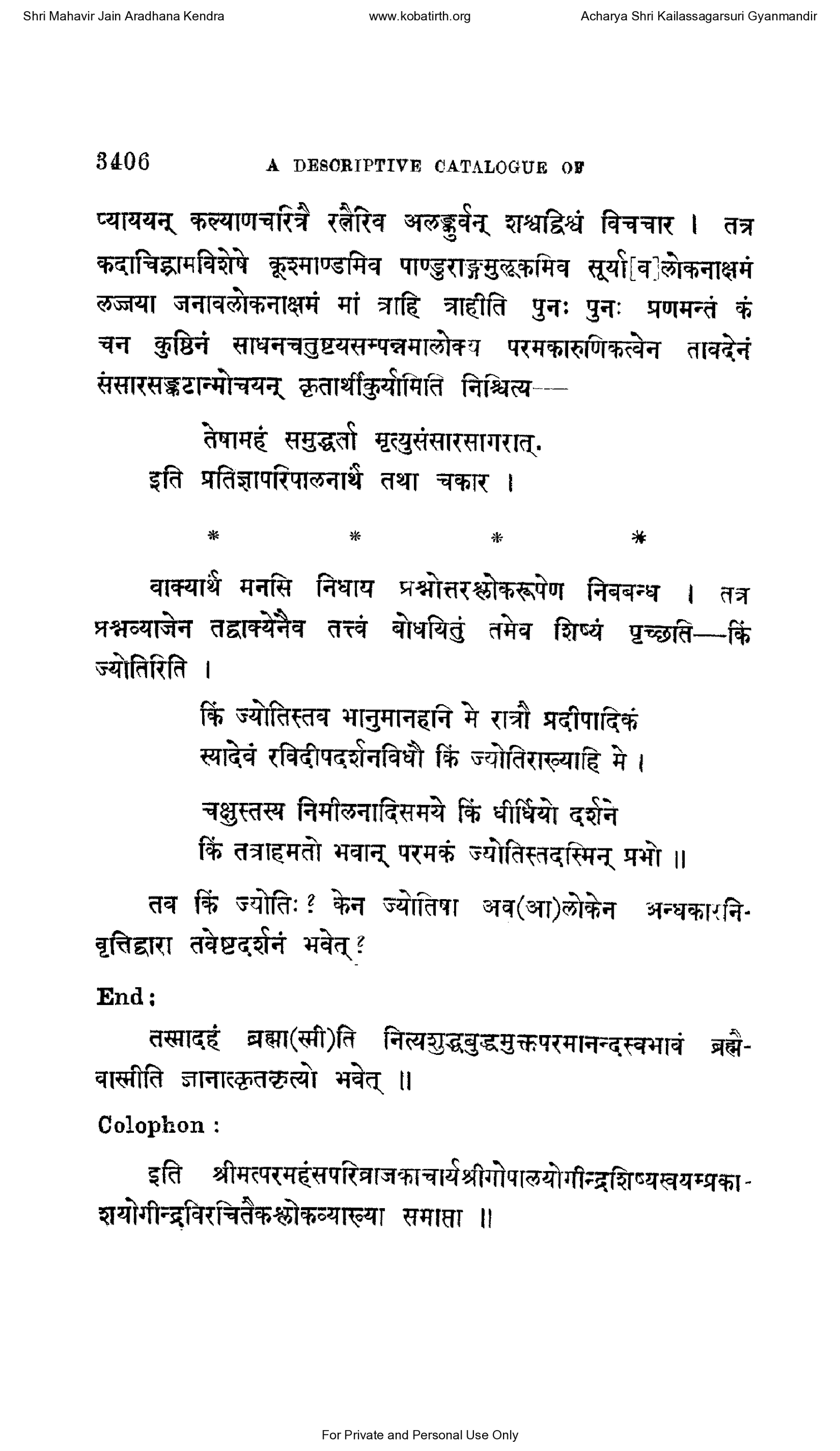 Shri Mahavir Jain Aradhana Kendra www.kobatirth.org Acharya Shri Kailassagarsuri Gyanmandir 3406 A DESCRIPTIVE CATALOGUE OF
