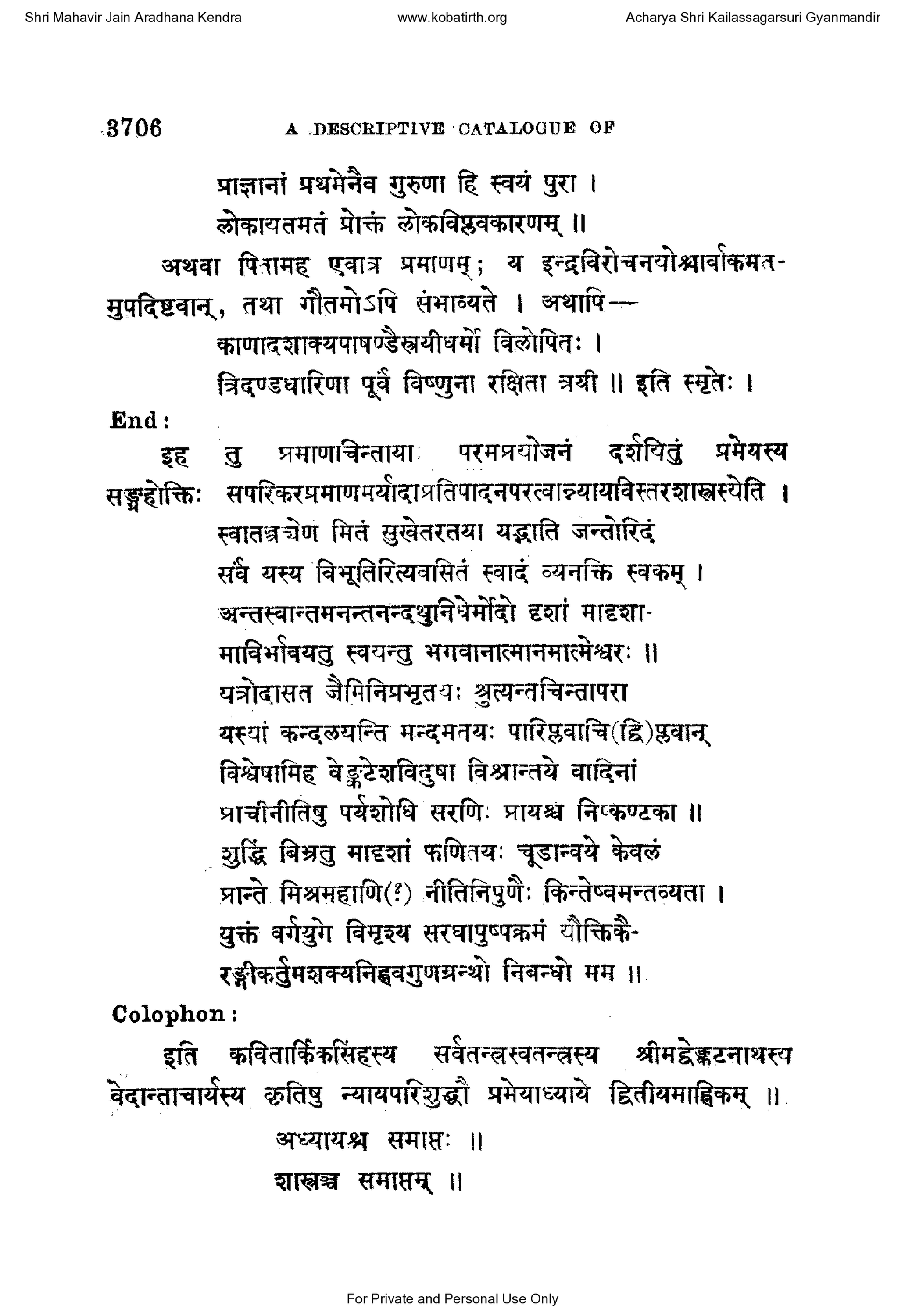 Shri Mahavir Jain Aradhana Kendra www.kobatirth.org Acharya Shri Kailassagarsuri Gyanmandir 3706 A DESCRIPTIVE CATALOGUE OF