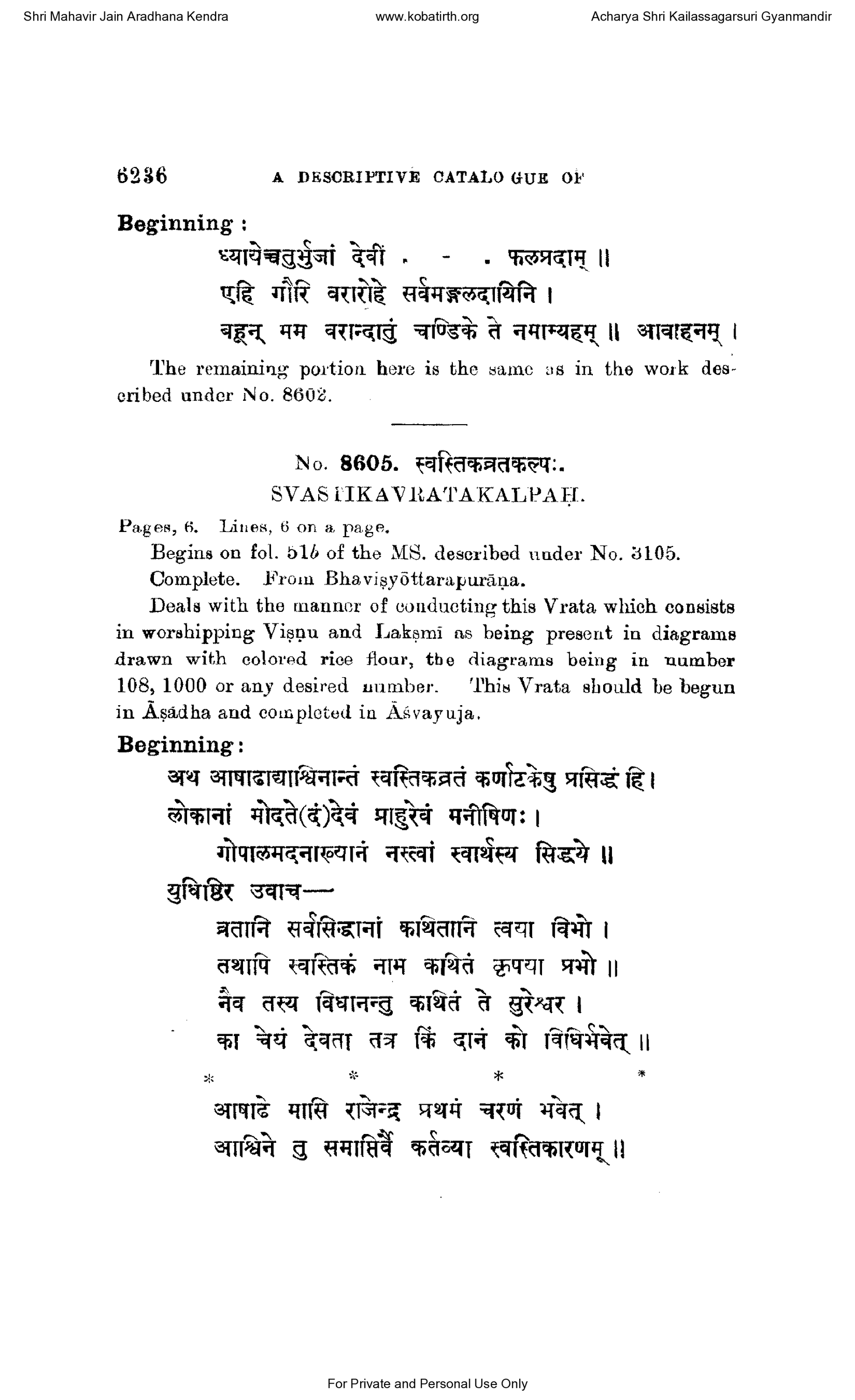 Shri Mahavir Jain Aradhana Kendra www.kobatirth.org Acharya Shri Kailassagarsuri Gyanmandir 6236 Beginning :