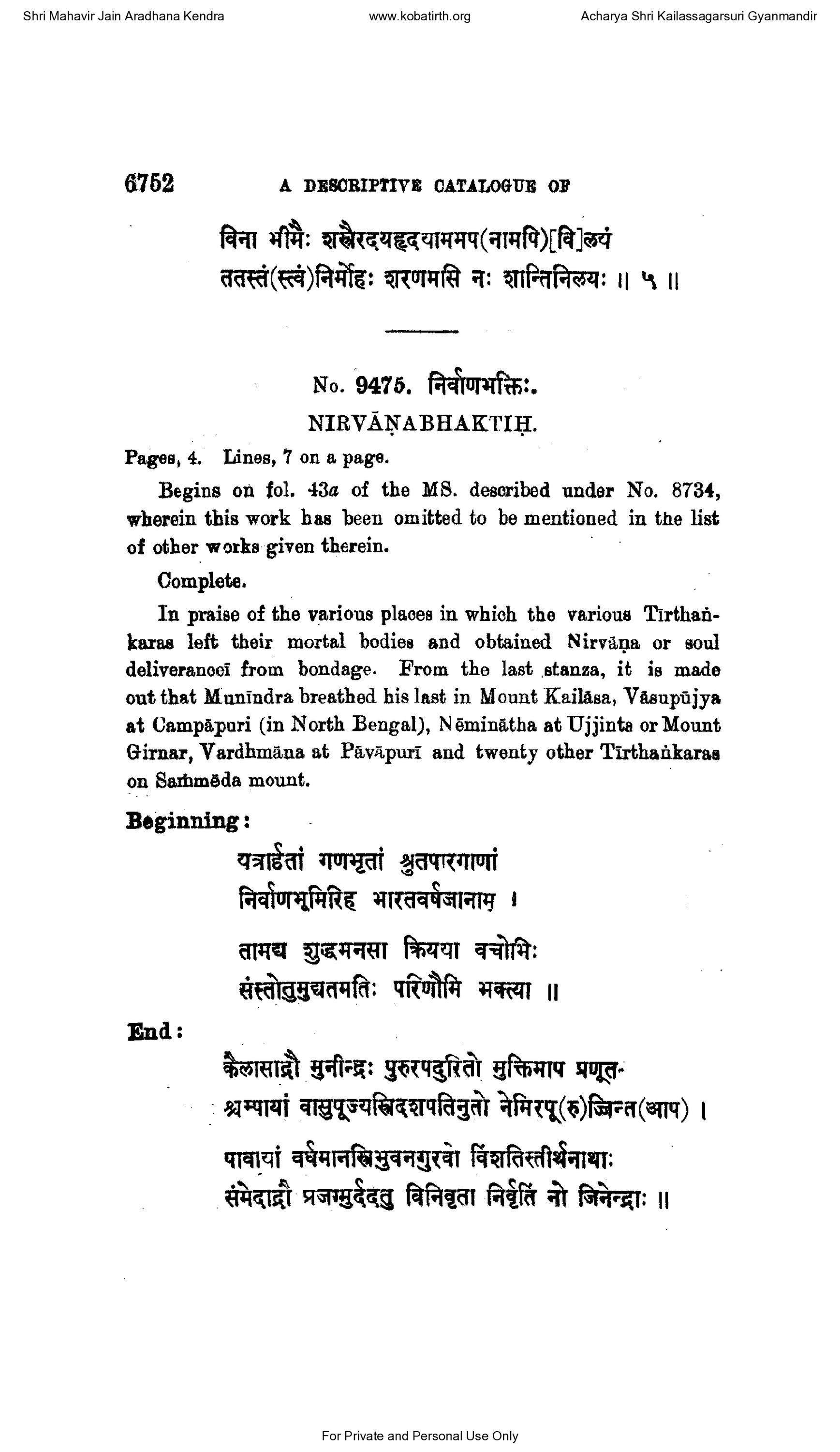 ] No. 9475. निर्वाणभक्तिः.