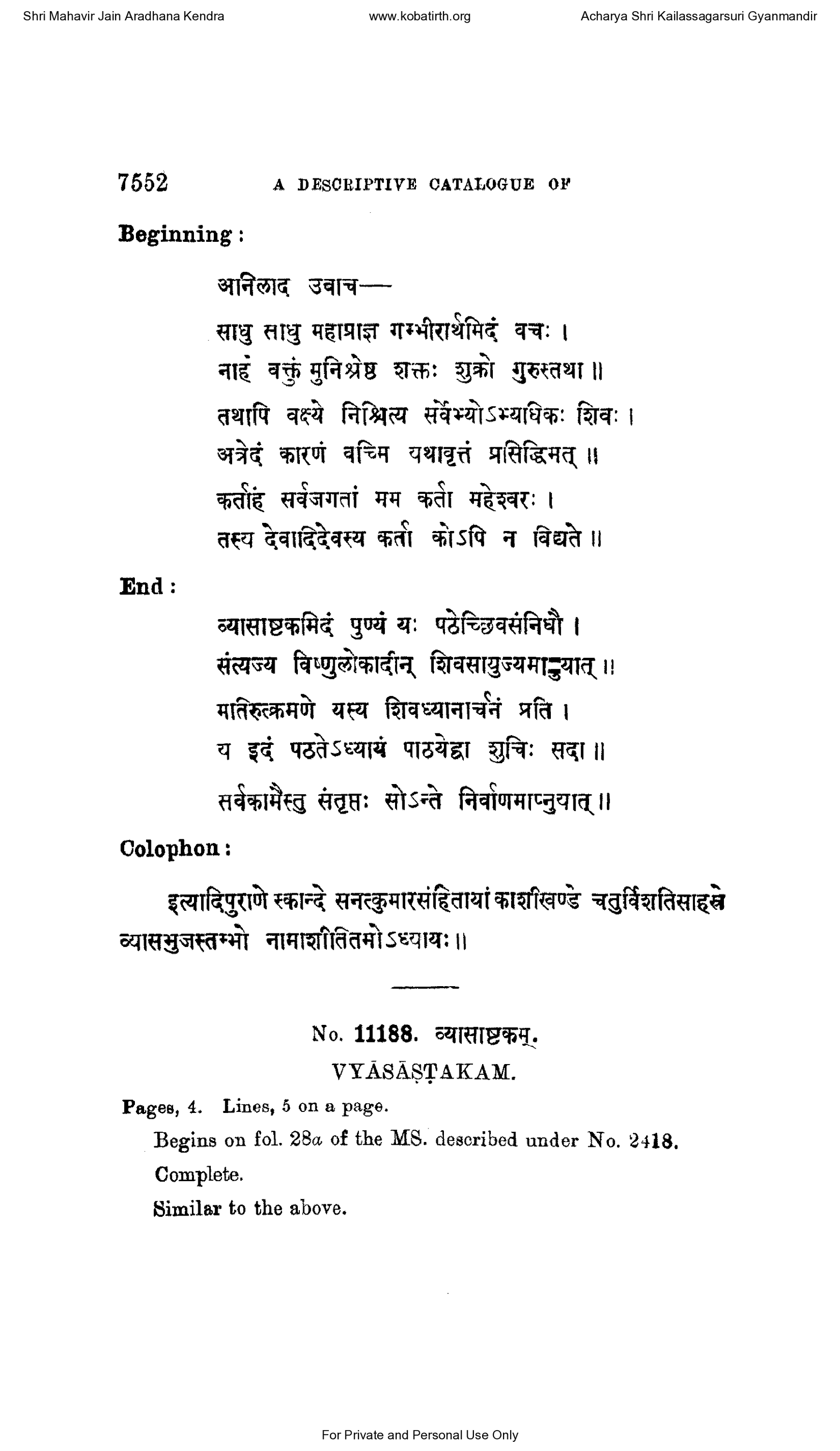 Shri Mahavir Jain Aradhana Kendra www.kobatirth.org Acharya Shri Kailassagarsuri Gyanmandir 7552 Beginning :