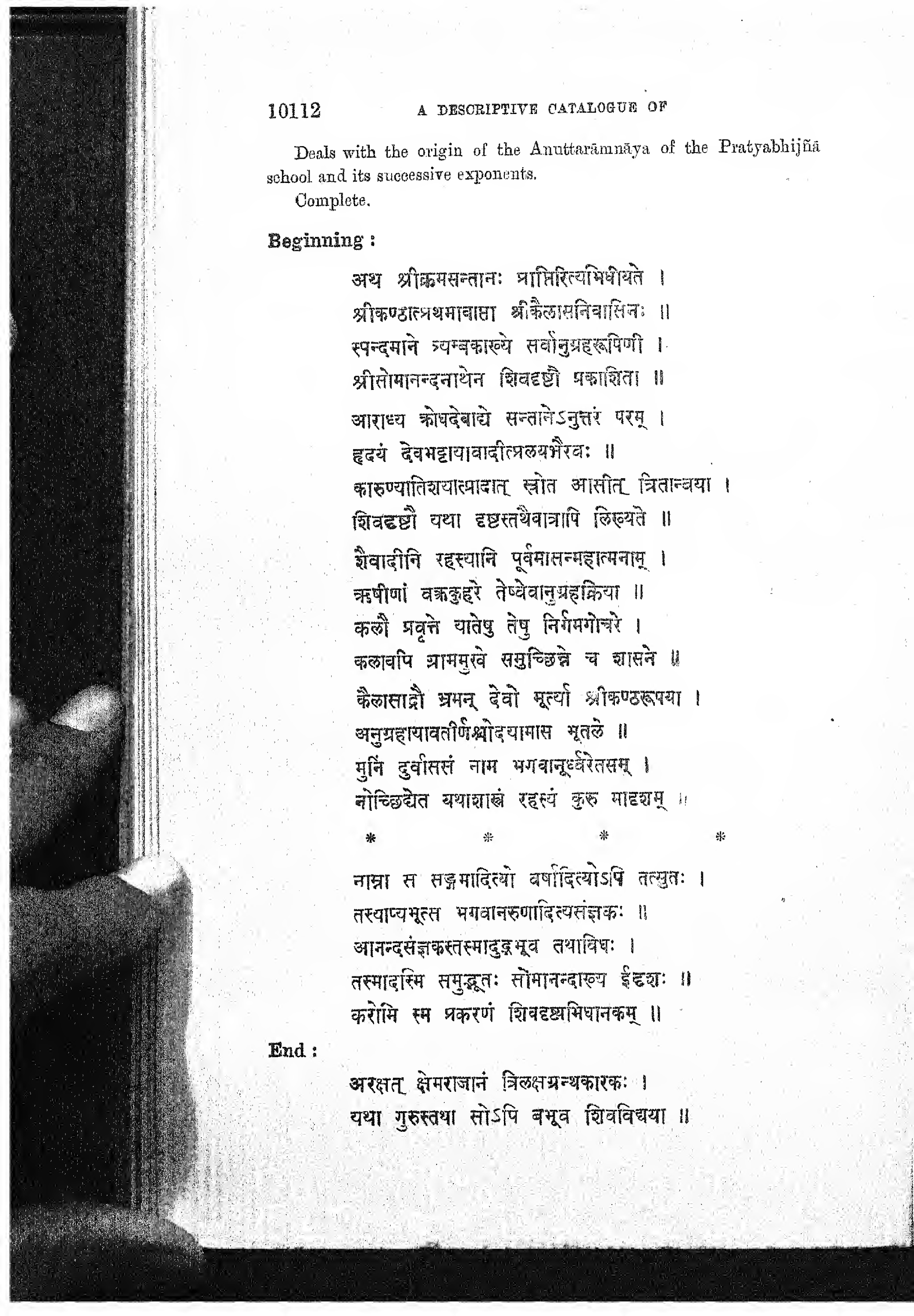Essay name: A Descriptive Catalogue of the Sanskrit Manuscripts, Madras