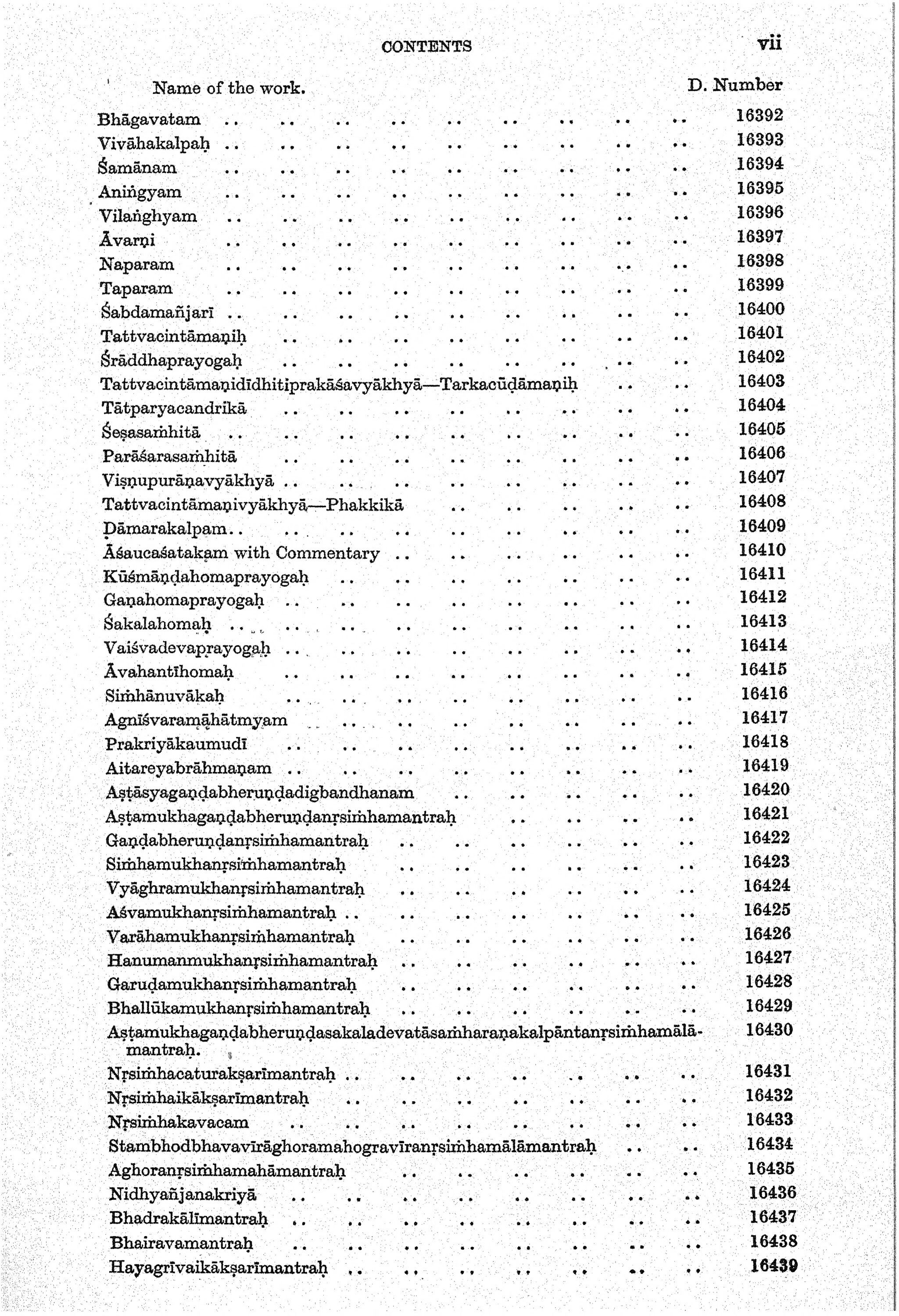 CONTENTS vii Name of the work. Bhāgavatam D. Number 16392 Vivāhakalpaḥ