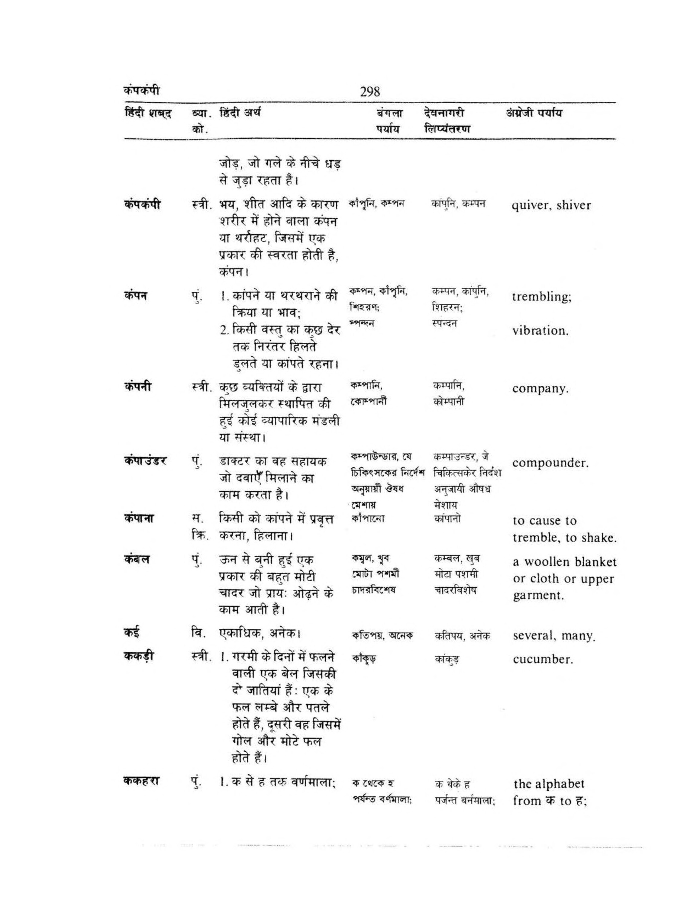 कंपकंपी [kaṃpakaṃpī ] 298 हिंदी शब्द