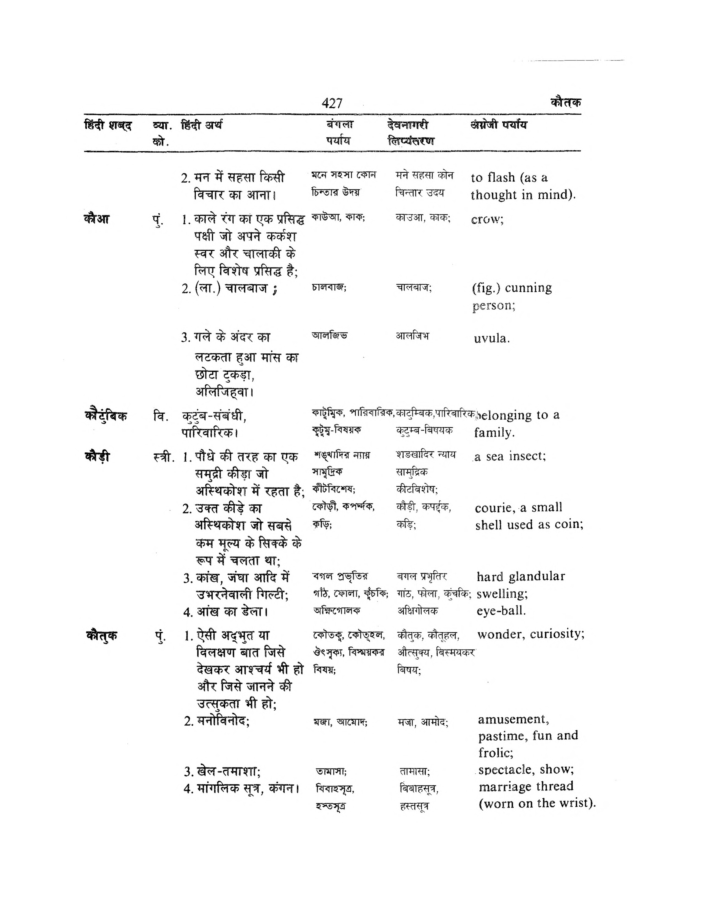 These pages contain a Trilingual Dictionary of various Indian languages (with English meaning); forming part of a collection aimed at enhancing educational opportunities in India. The dictionaries are found in a library designed to support students and lifelong learners in their academic and spiritual pursuits as well as to improve one’s socio-economic status and political equity.