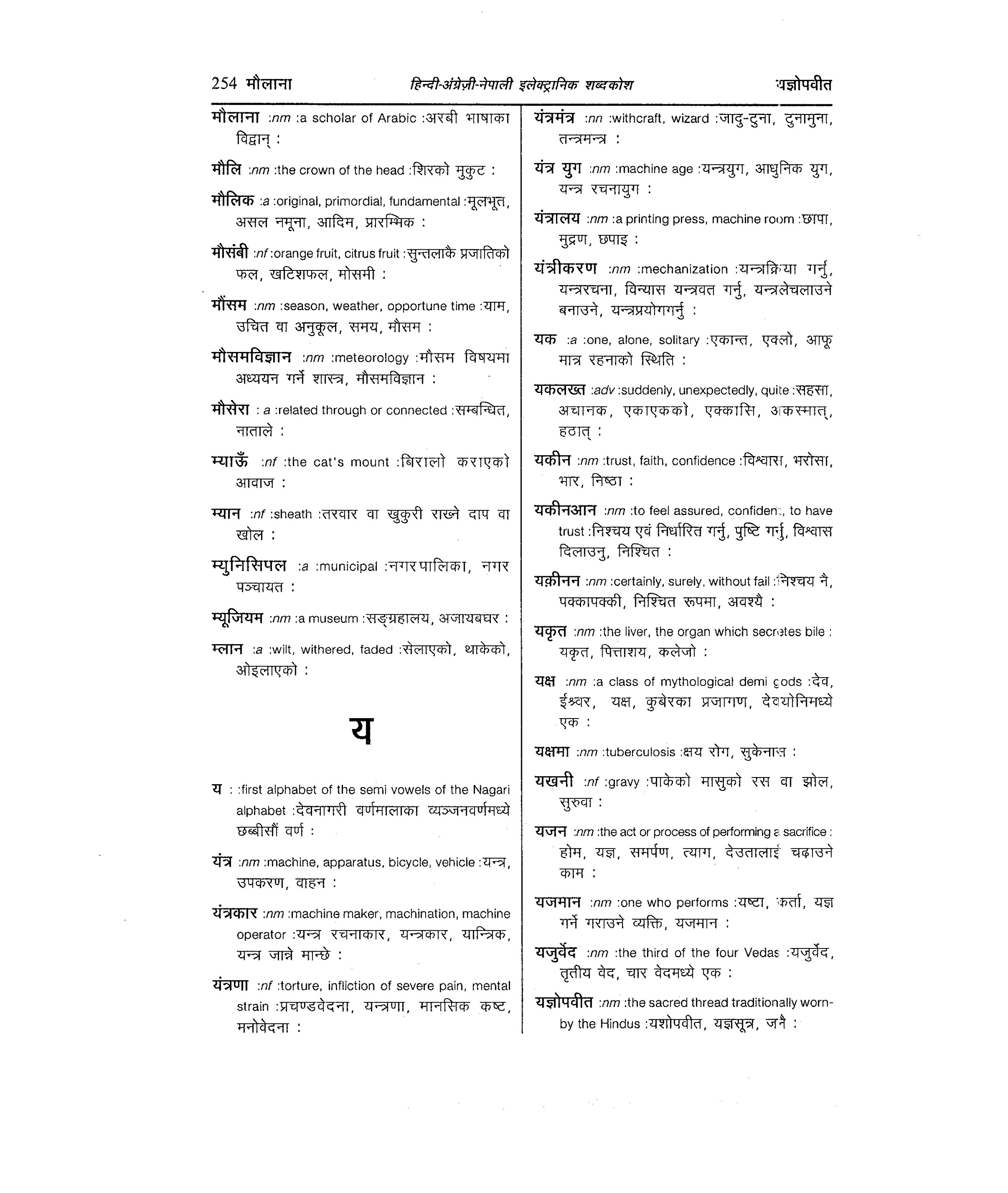 ya: : ] first alphabet of the semi vowels of the Nagari