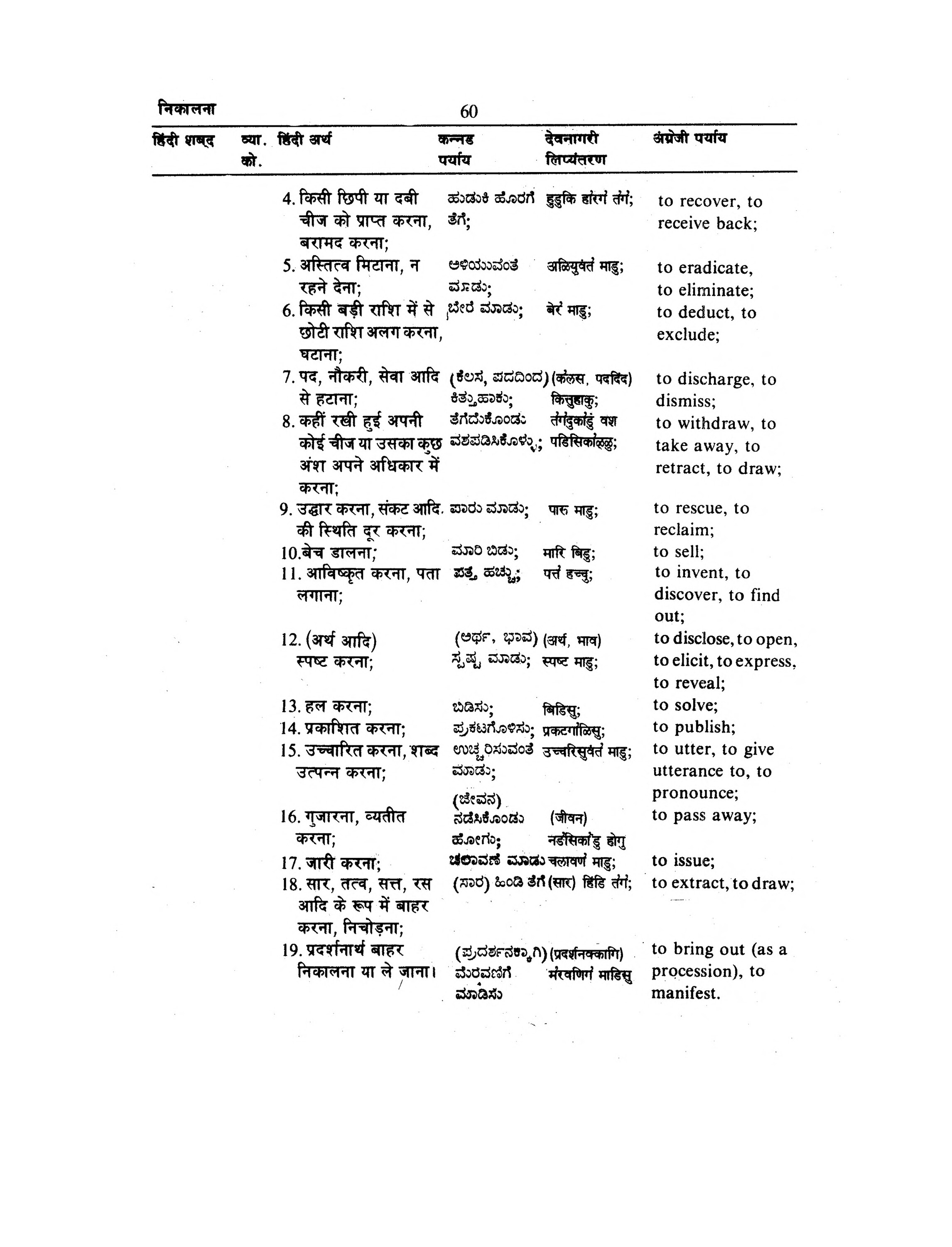 निकालना हिंदी शब्द व्या. हिंदी अर्थ [nikālanā hiṃdī śabda vyā. hiṃdī artha ] 60 कन्नड