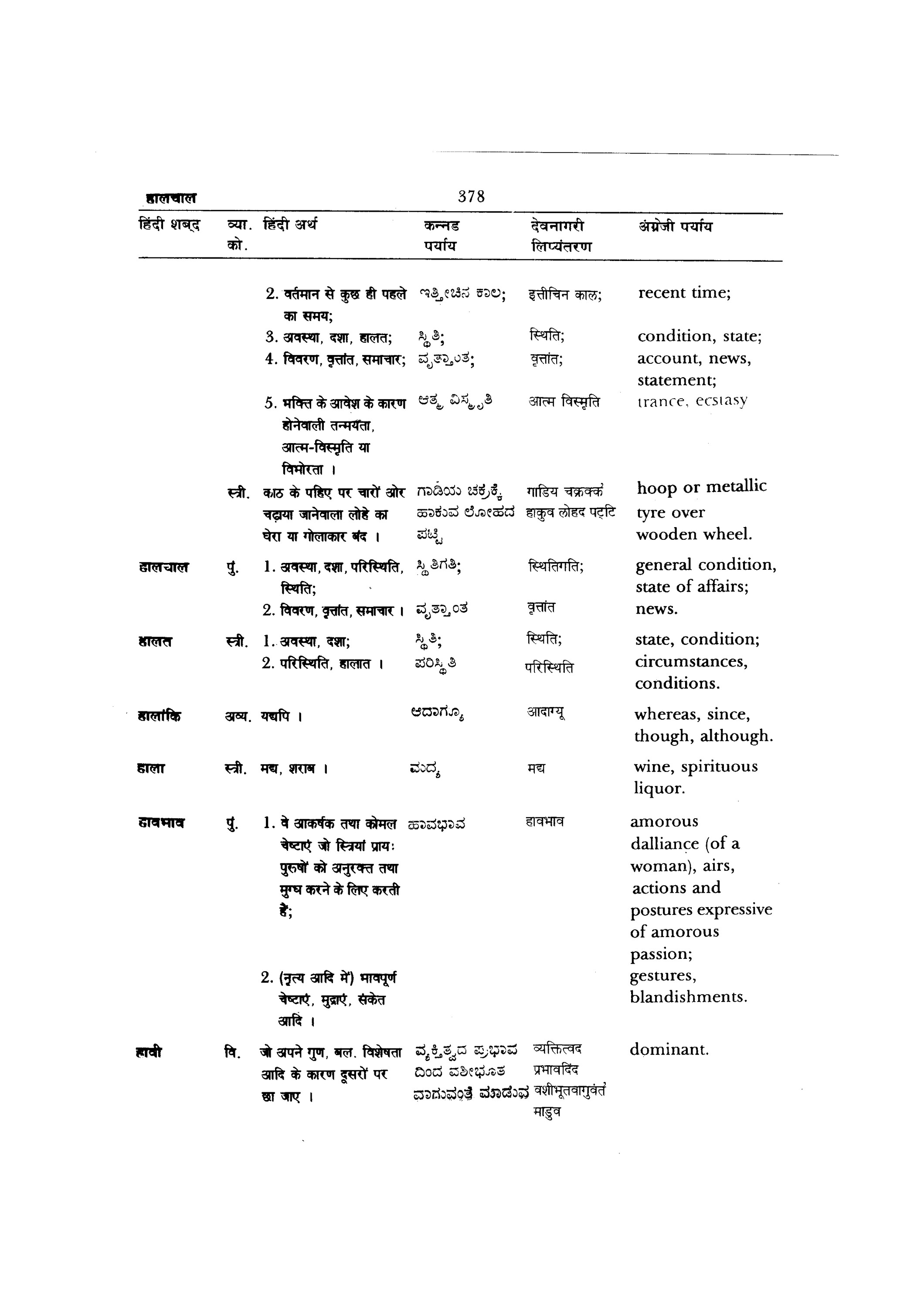 हालचाल हिंदी शब्द व्या. हिंदी अर्थ को. कन्नड पर्याय [hālacāla hiṃdī śabda vyā. hiṃdī artha ko. kannaḍa paryāya ] 378 देवनागरी