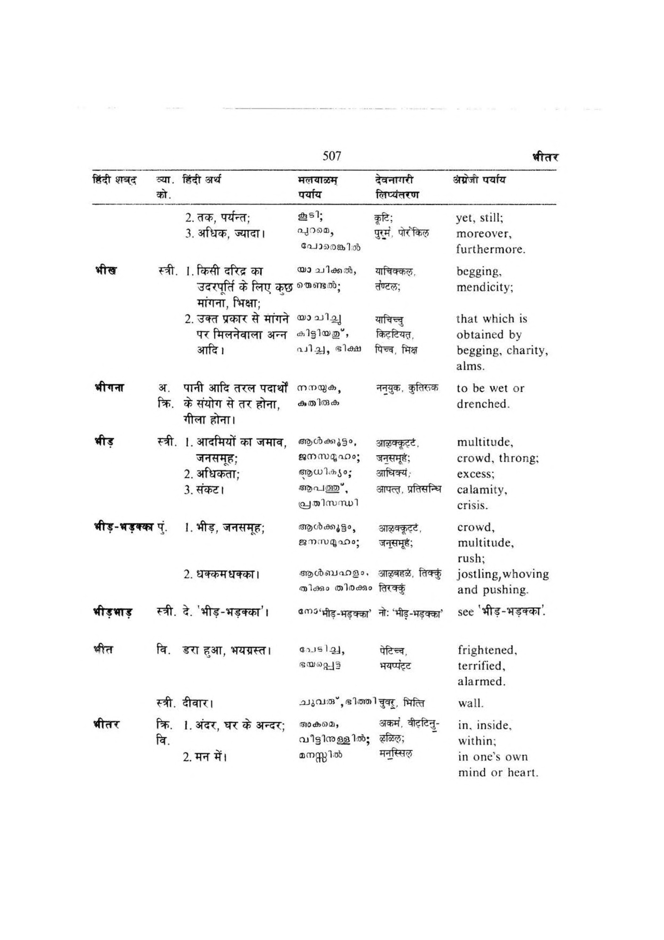 These pages contain a Trilingual Dictionary of various Indian languages (with English meaning); forming part of a collection aimed at enhancing educational opportunities in India. The dictionaries are found in a library designed to support students and lifelong learners in their academic and spiritual pursuits as well as to improve one’s socio-economic status and political equity.
