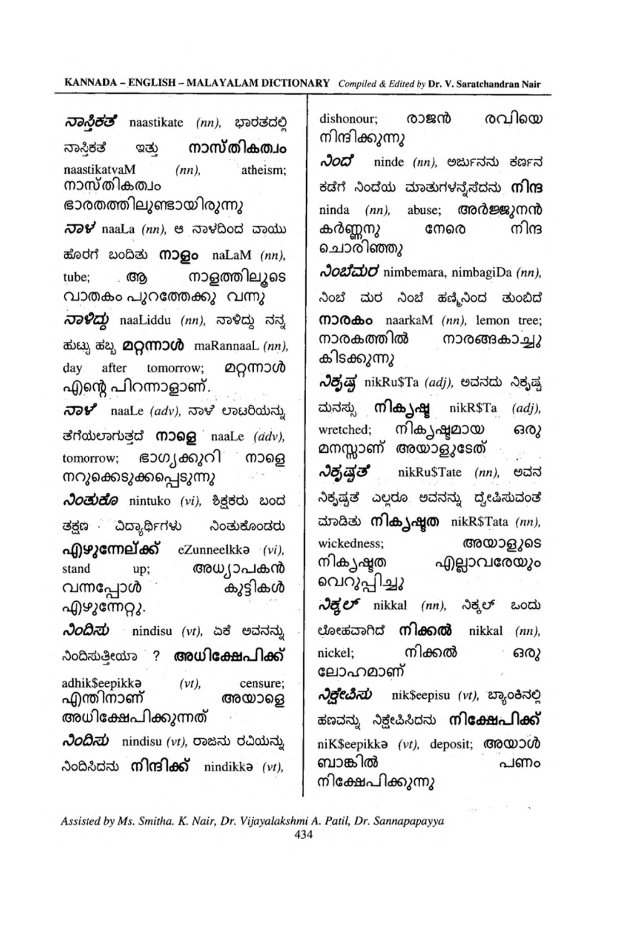 KANNADA ENGLISH - MALAYALAM DICTIONARY Compiled & Edited by Dr. V. Saratchandran Nair