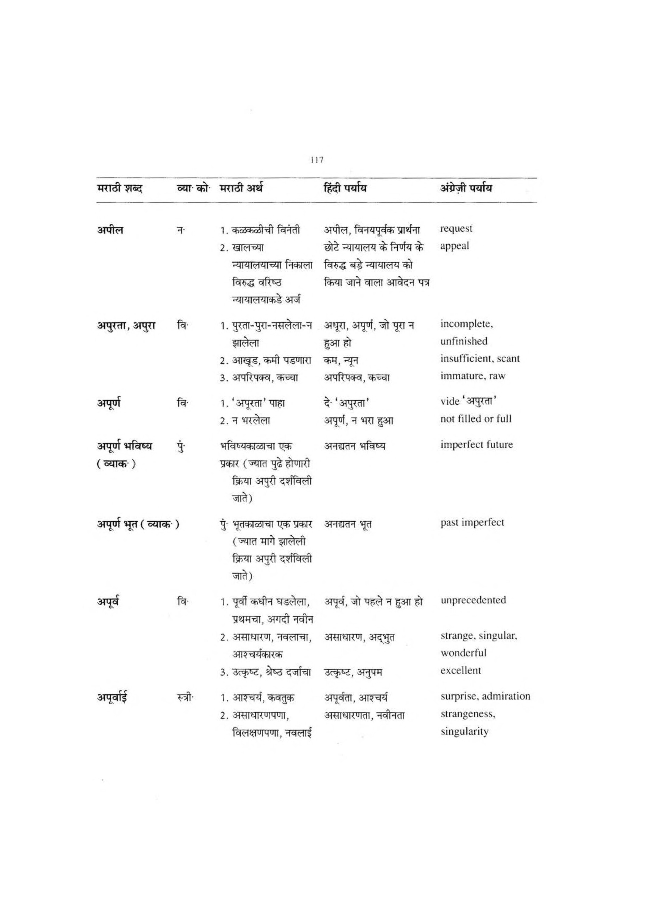 मराठी शब्द अपील न. व्या को मराठी अर्थ [marāṭhī śabda apīla na. vyā ko marāṭhī artha ] 1. कळकळीची विनंती [kaḷakaḷīcī vinaṃtī ] 2. खालच्या [khālacyā ] 117 हिंदी पर्याय