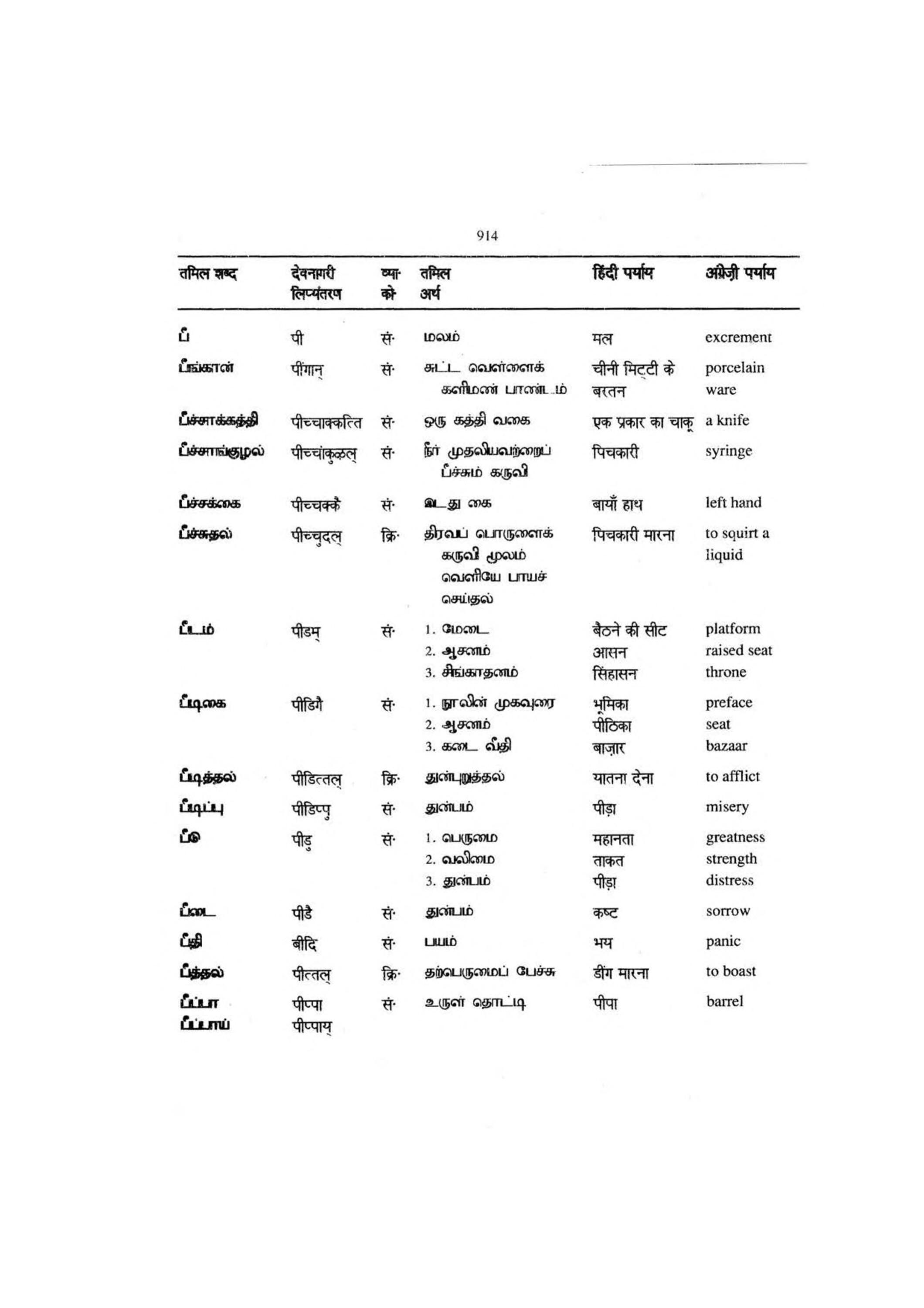 तमिल शब्द देवनागरी व्या तमिल [tamila śabda devanāgarī vyā tamila ] 914 हिंदी पर्याय