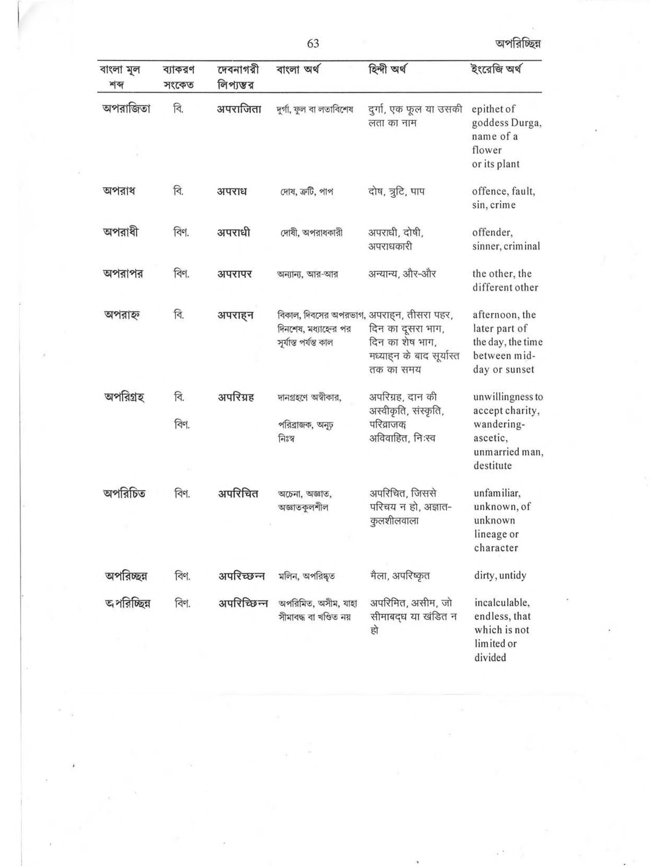 अर [ara] িछিन [na ] অপরিমিত, অসীম, যাহা