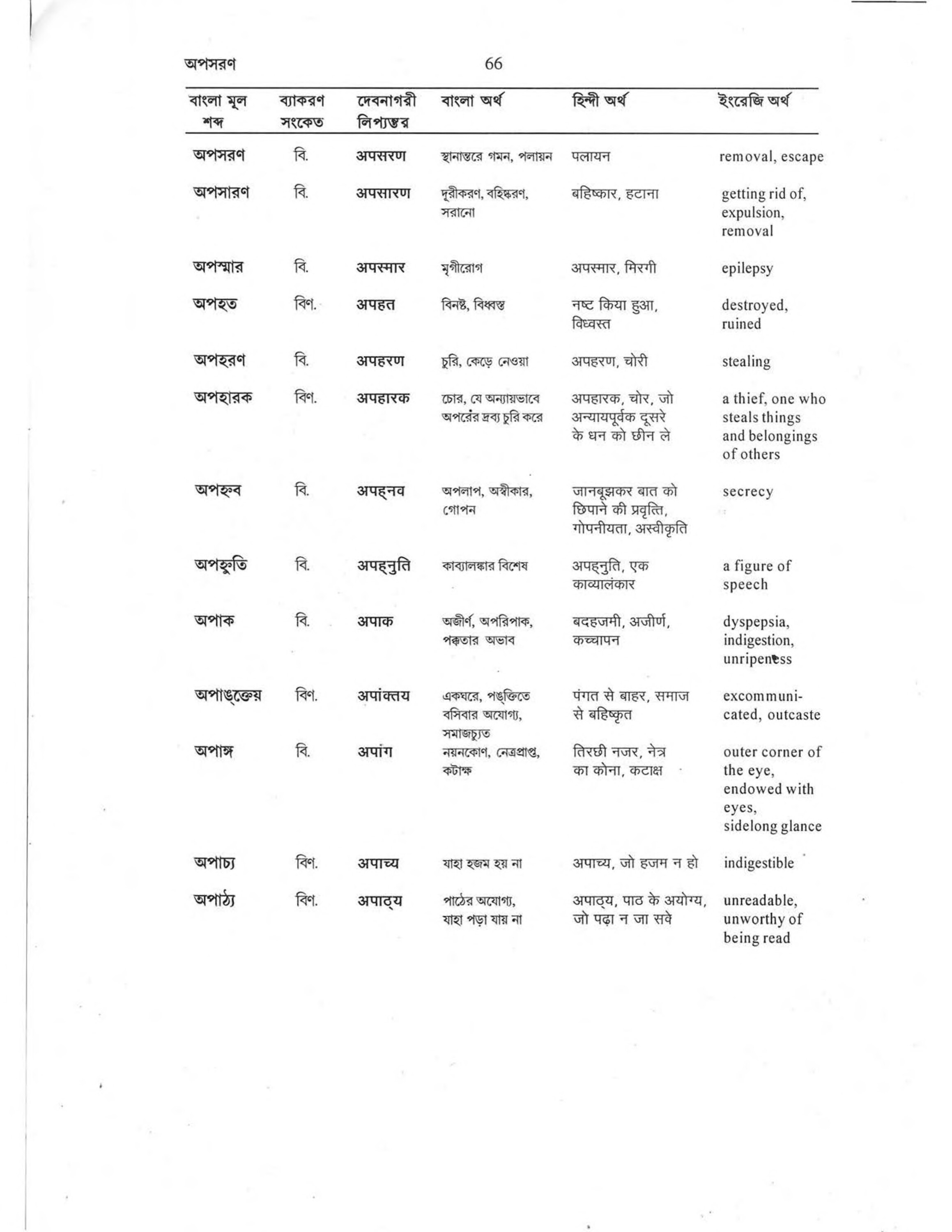 বাংলা অর্থ