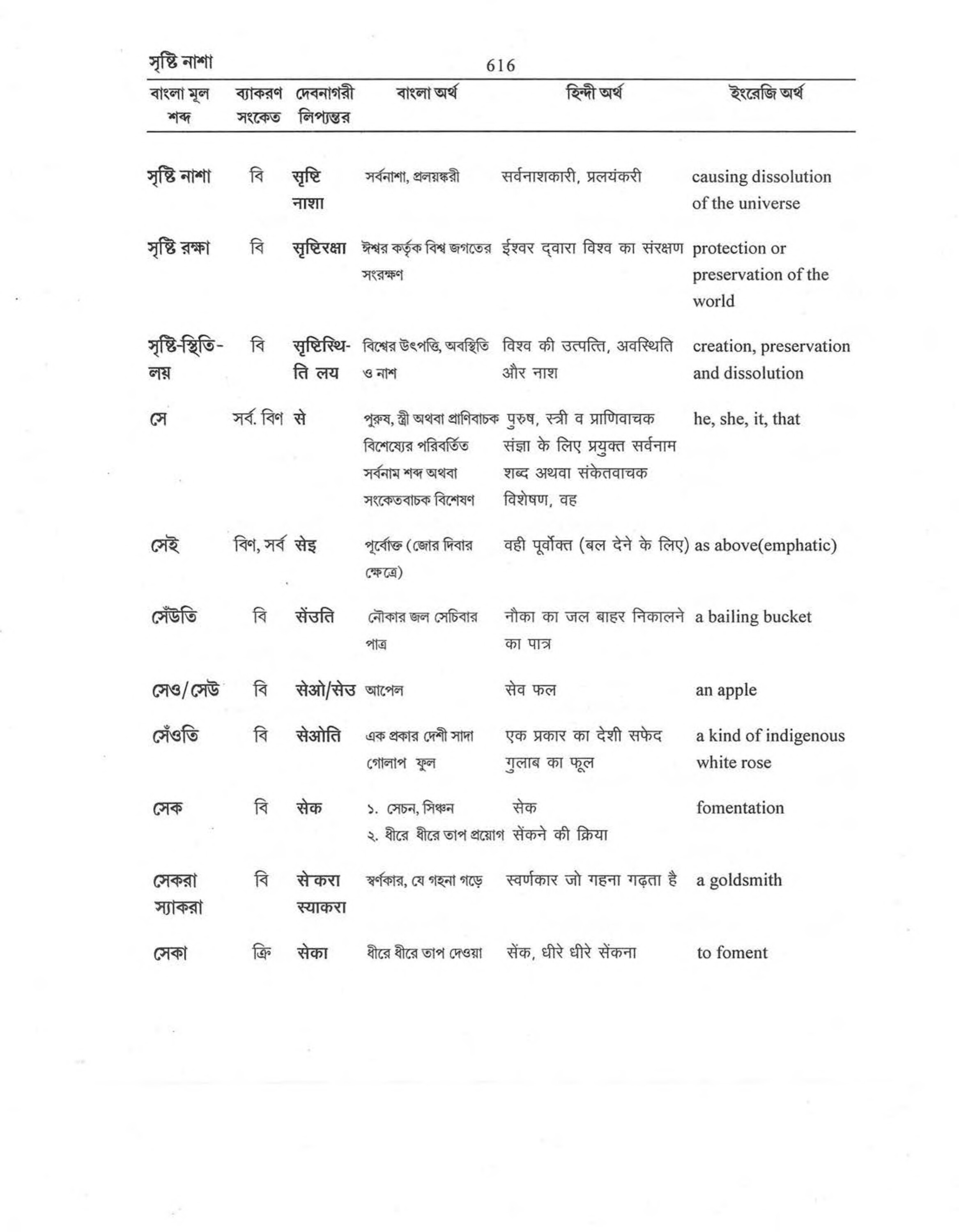 These pages contain a Trilingual Dictionary of various Indian languages (with English meaning); forming part of a collection aimed at enhancing educational opportunities in India. The dictionaries are found in a library designed to support students and lifelong learners in their academic and spiritual pursuits as well as to improve one’s socio-economic status and political equity.