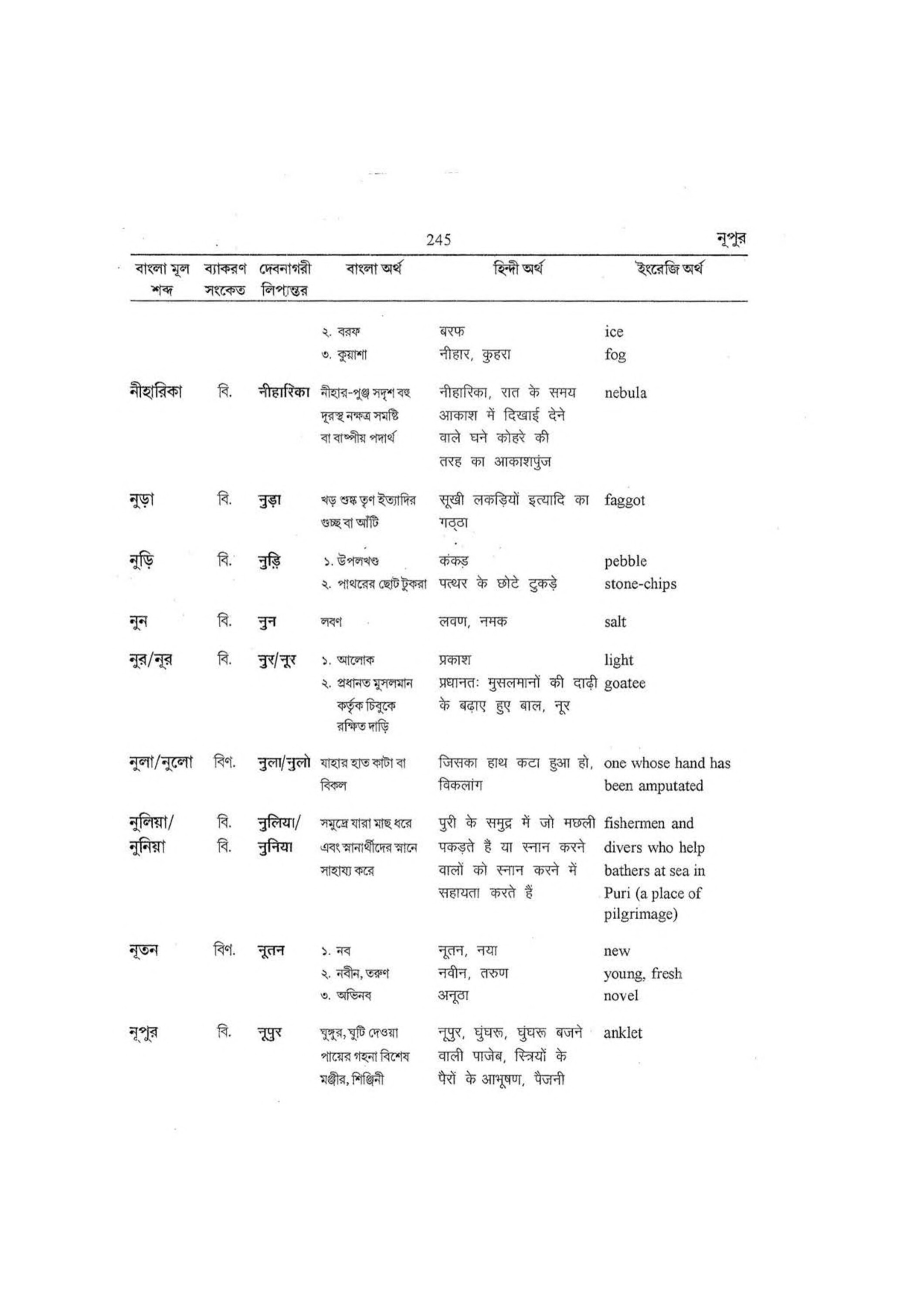 বাংলা মূল ব্যাকরণ দেবনাগরী শব্দ সংকেত লিপ্যন্তর বাংলা অর্থ 245 নূপুর