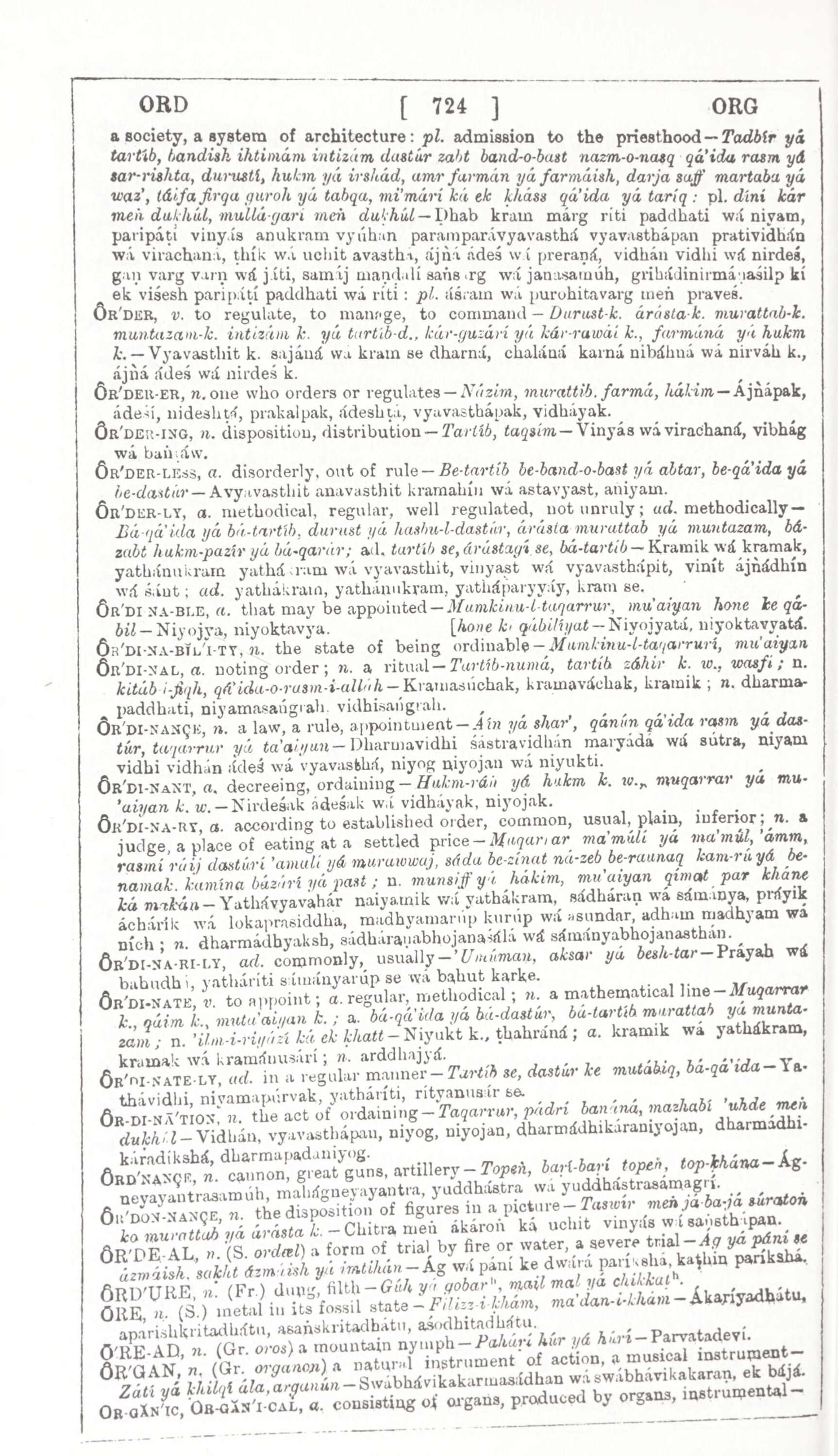OR'DI-NANÇE, n. a law, a rule, appointment - Ain ya shar', qánún qá'ida rasm yá das-