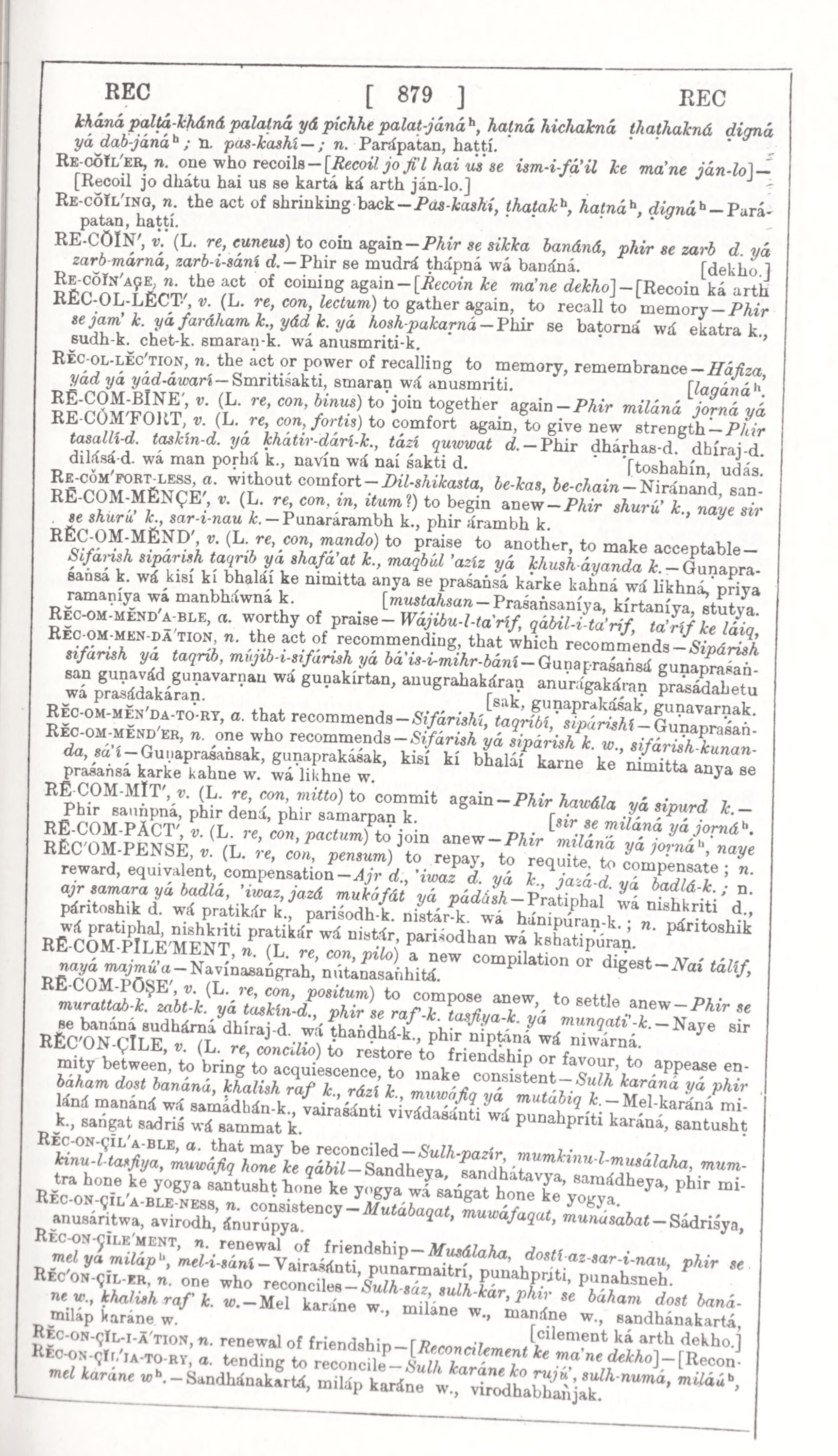RE-COM-MIT', v. (L. re, con, mitto) to commit again-Phir hawála ya sipurd k.-