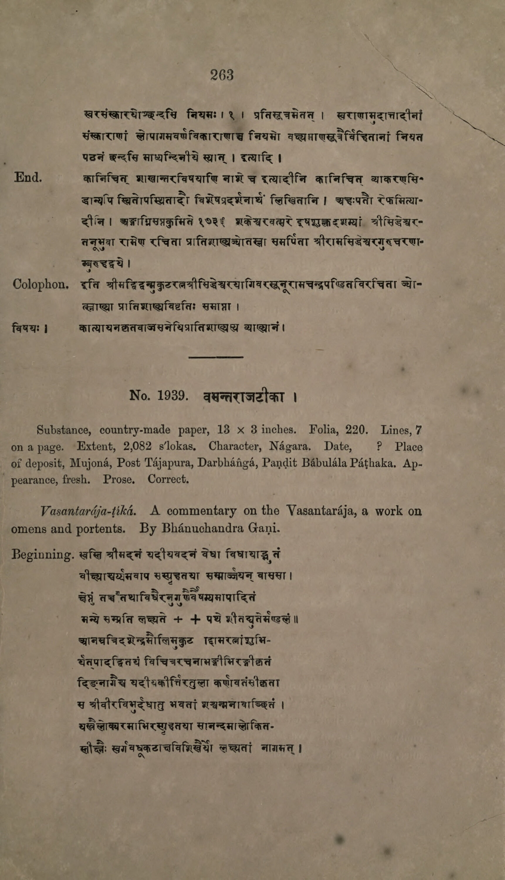 on a page. Extent, 2,082 s'lokas. Character, Nágara. Date, ? Place