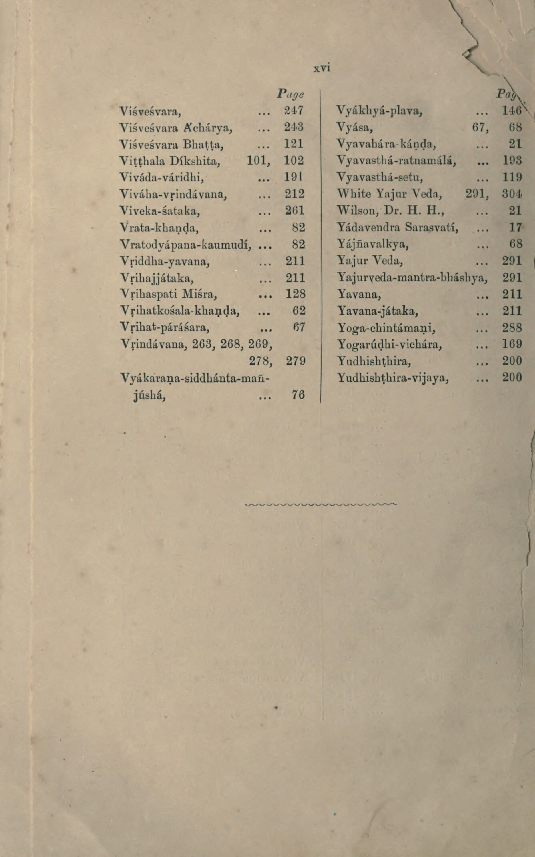 xvi Visvesvara, Visvesvara Acharya, Visvesvara Bhatta, Vitthala Dikshita, Viváda-váridhi, Viváha-vṛindávana, Viveka-śataka, Page 247 Pag