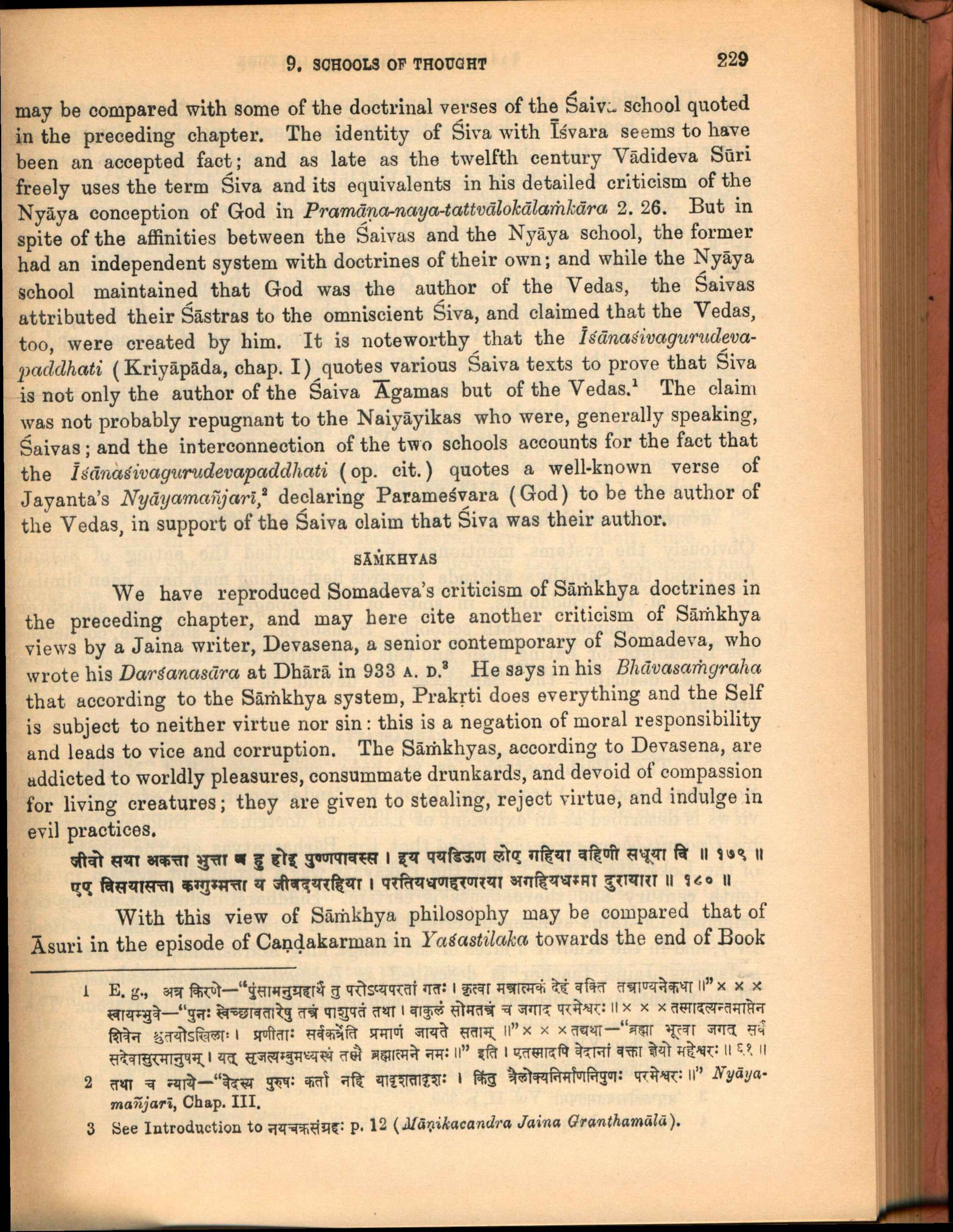 We have reproduced Somadeva's criticism of Samkhya doctrines in