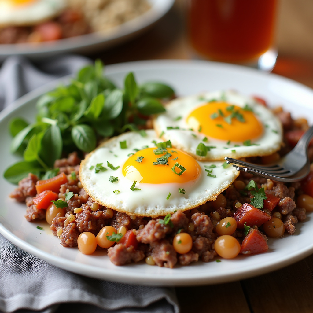 Recept voor:Gezonde Corned Beef Hash met Gebakken Eieren