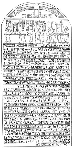 THE text which contains this legend is found cut in hieroglyphics upon a stele which is now preserved in Paris. Attention was first called to it by Chabas, who in 1857 gave a translation of it in the Revue Archéologique, p. 65 ff., and pointed out the importance of its contents with his characteristic ability. The hieroglyphic text was first published by Ledrain in his work on the monuments of the Bibliothèque Nationale in Paris, [1] and I gave a transcript of the text, with transliteration and translation, in 1895. [2]