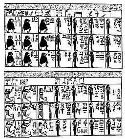 This scene is explained by the horizontal line of inscription written above it, and the hieroglyphic text, based on the editions of Lefébure and Champollion, reads: