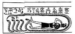 The body of this serpent is bent round to form an oval, and within it lies on his back the god AFU, who is holding upon his head a beetle, which is the symbol of the god KHEPERA.